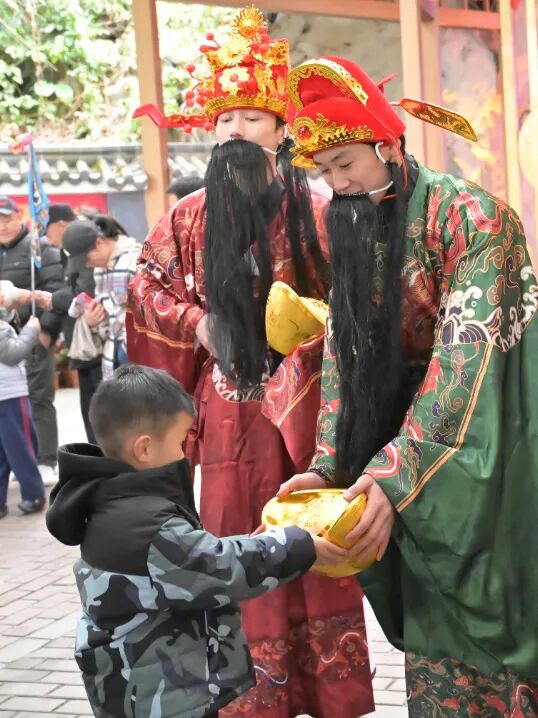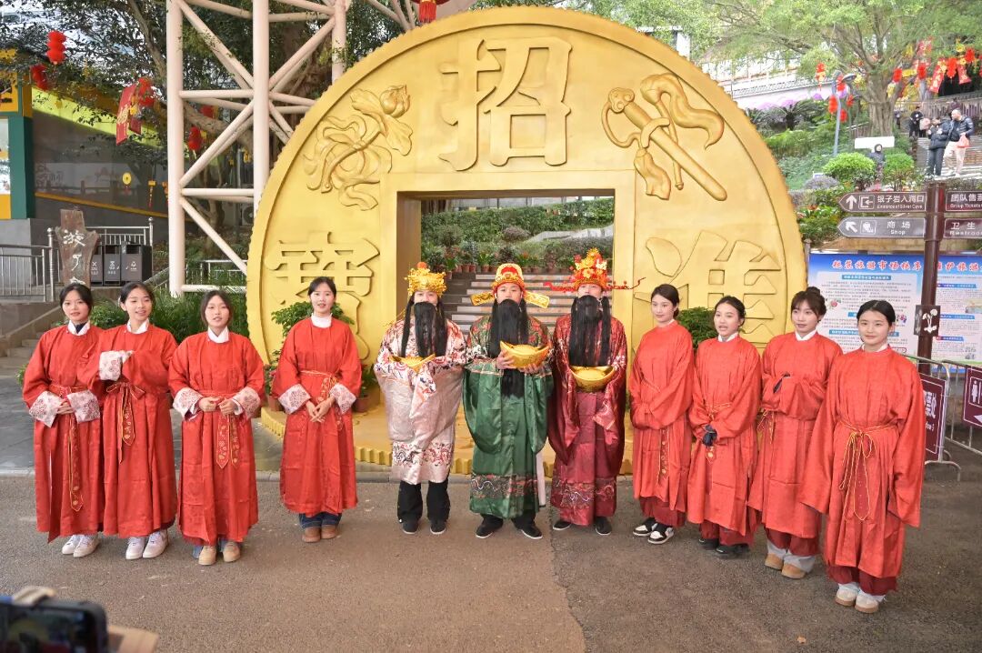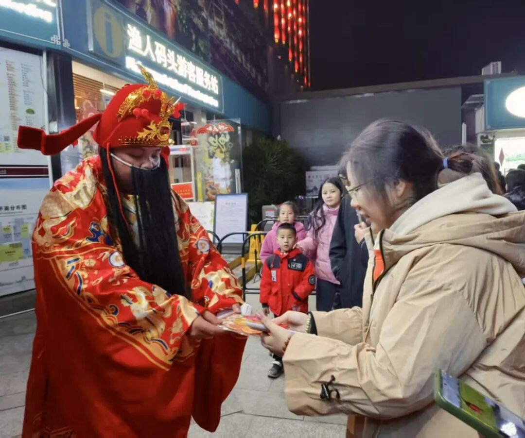 五路财神巡游派发福礼,舞龙舞狮、汉服舞蹈、祈福游戏轮番登场,游客争相打卡。景区以场景化体验创新民俗,游客感慨:“这才是传统文化的感染力!”