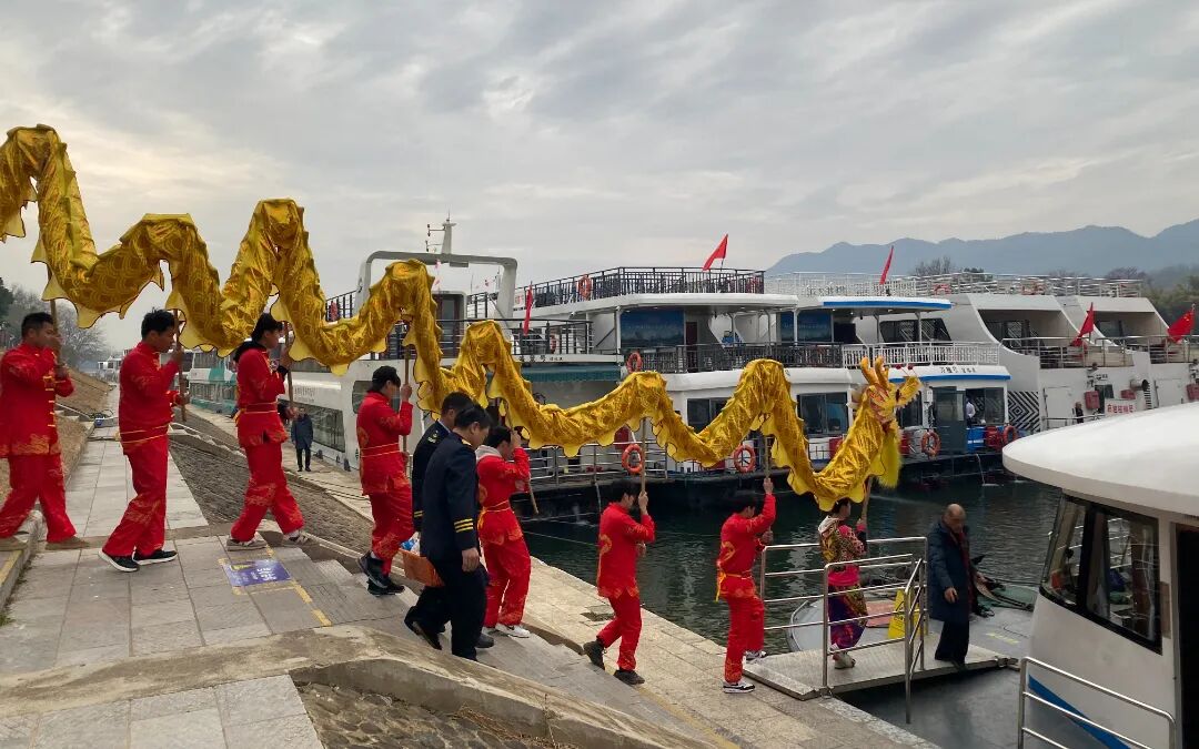 竹江码头舞龙迎新、砸福包等活动吸引游客踊跃参与,山水间锣鼓喧天,游客在自然美景与民俗互动中尽享新春欢愉。