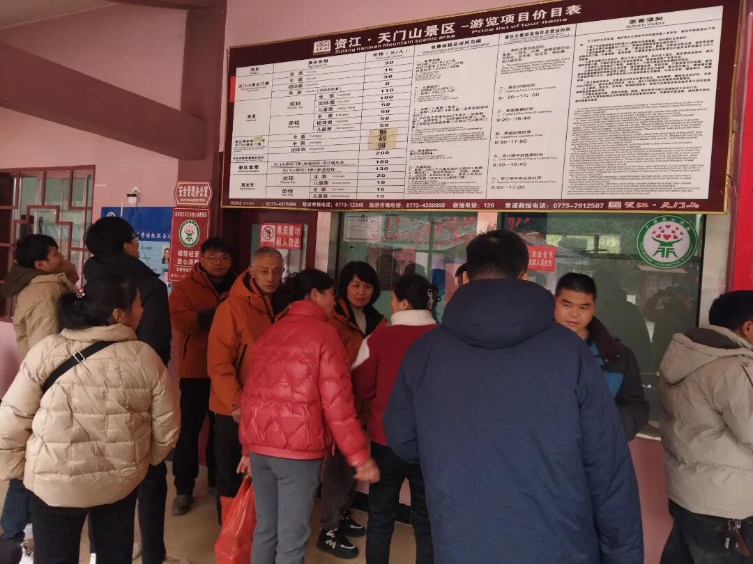 资江·天门山景区年初一即迎客流高峰,停车场爆满。除壮丽风光外,工作人员高效救助扭伤游客的事迹传为佳话,贴心服务获广泛赞誉。游客感叹:“景美,人更暖!”