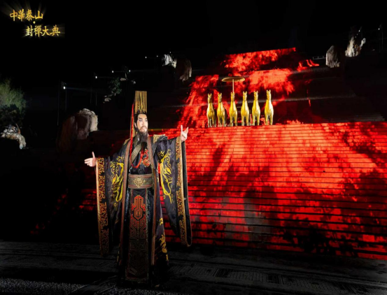 如今,《史记》中凝固的文字,正通过《中华泰山·封禅大典》大型实景演出,重新拥有了流动的生命力。这场由文化大师梅帅元打造、总投资3亿元的山东省文化旅游重点项目,自2009年起在天烛峰景区上演,以泰山山体为天然背景,将8600平方米的场地化作“活的史书”——5300平方米的舞台依山势而建,2364个观众席与舞台形成45度仰视视角,坐在其中,四面是隐隐青山,右侧溪水潺潺,月夜星空下,山风裹挟着花香虫鸣,让人瞬间沉浸式走进历史。演出循着《史记》脉络,提炼五朝六帝的封禅场景:秦始皇的雄健、汉武帝的虔诚、唐太宗的开阔……不再是史书里的文字符号,而是演员身着古装、手持礼器的生动演绎,灯光勾勒出封禅台的轮廓,音乐还原出古礼的庄严,让观众不必再从《史记》字句中想象“千乘万骑”的盛况,当雾气在山间升腾,当祝文诵读声穿过夜空,两千多年前的封禅气息仿佛触手可及。