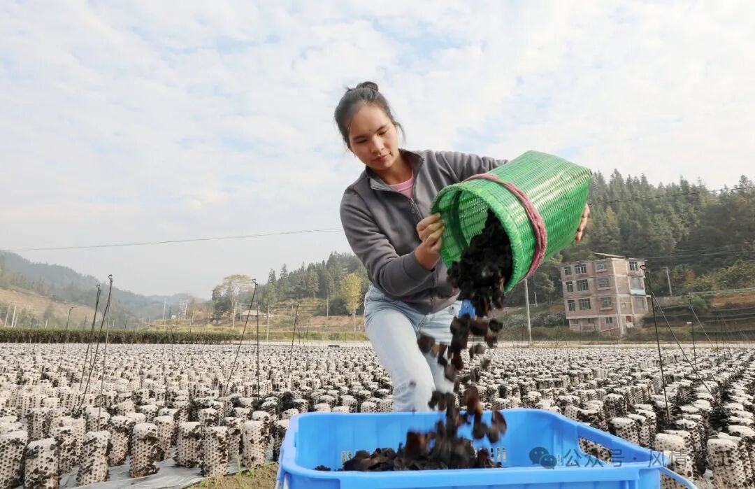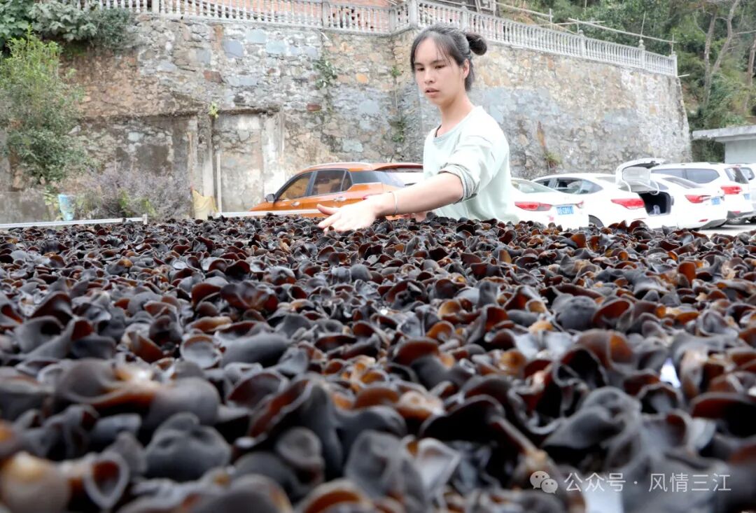 12月3日,村民在三江侗族自治县八江镇八斗村采摘黑木耳,抢鲜供应侗乡蔬菜市场。