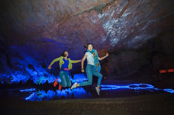 芦笛岩,是“国宾洞”,也是桂林喀斯特地貌代表之一,我们的阳朔一路没有把岩洞安排在内,好不遗憾!好在借她俩的笔触可以描绘:
