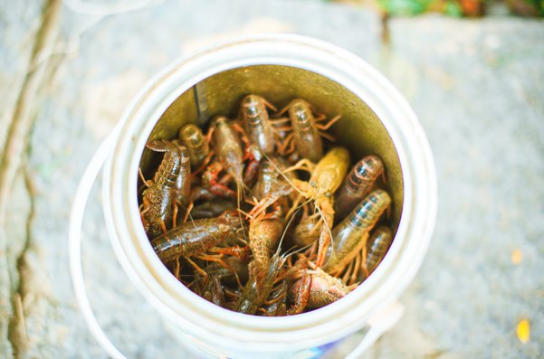池塘边上有个大叔在钓小龙虾,原来,小龙虾是钓上来的~~吃一盘去!