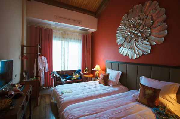 她们第一晚的酒店是网上预订的鲁家村中的水秀酒店,一下飞机就看到了酒店接机的人举着个硕大的牌子。经过了40分钟左右的路程,到达目的地。酒店竟有个泳池,炎炎夏日,好不凉爽,这等住宿条件让我好不羡慕,顺便脑海中YY出她俩穿比基尼的样子~