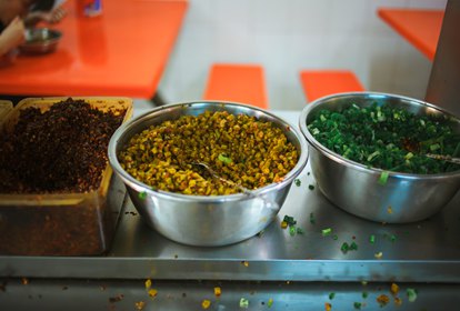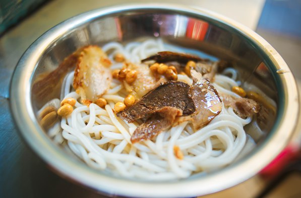 当然还有必不可少的桂林特别吃食,桂林米粉,类别好多,卤菜粉、汤粉、…粉粉粉~~ 图为卤菜粉,好像少几根葱花,其实调料很多可以自助免费加。