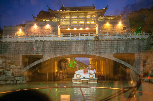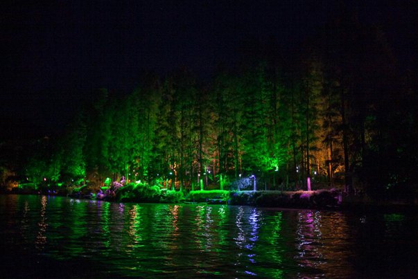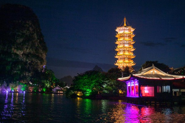 稍作休息,晚上就打算夜游两江四湖。两江四一如其名是把桂林市中心区的漓江、桃花江、杉湖、榕湖、桂湖、木龙湖贯通,形成环城游览水系,白天的温婉和晚上的璀璨形成了两种截然不同的景观。船上舒适凉爽,座位宽敞,而且船上还有亲切的导游讲解,船上还有wifi呐~不简单哟。