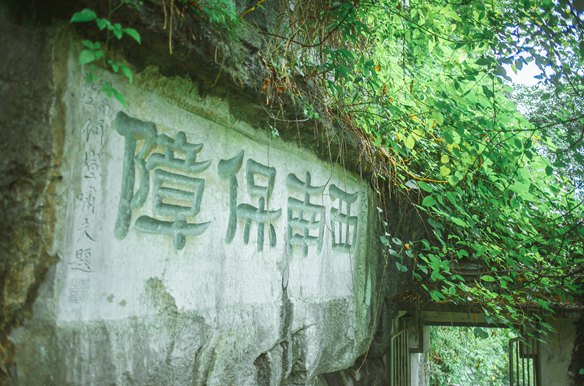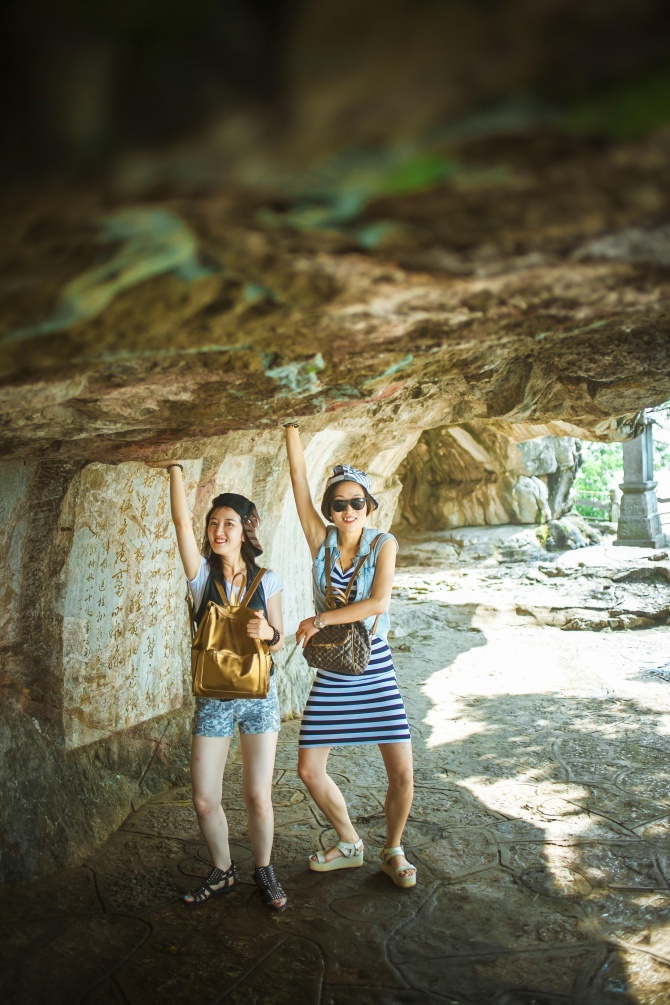 这里叫读书岩,古人留下的摩崖石刻旁,伸手便可顶天立地。
