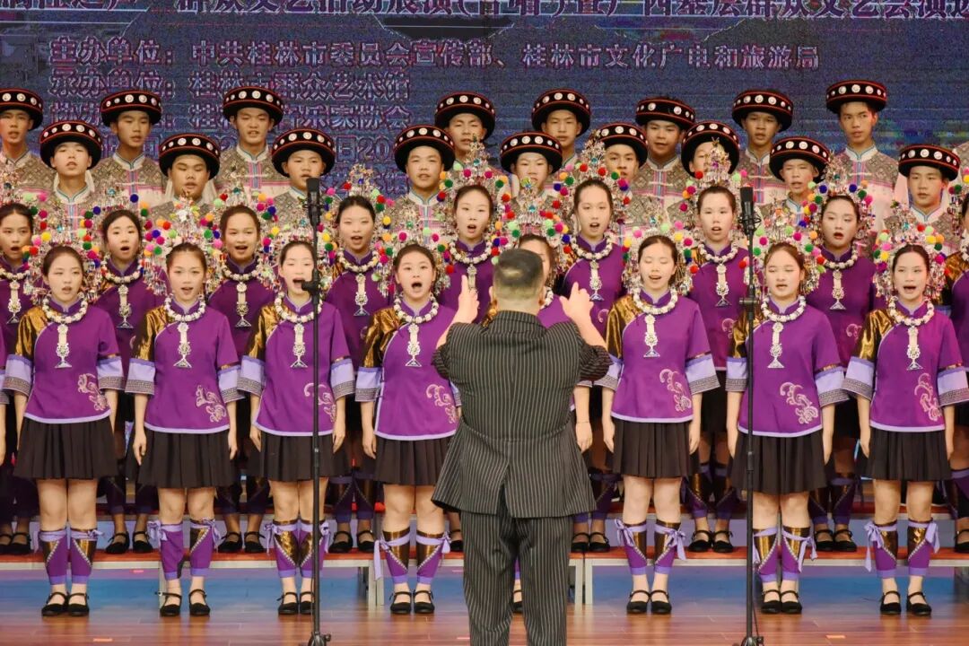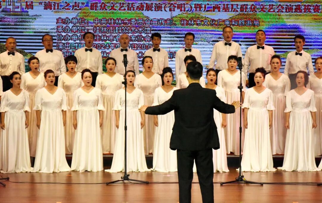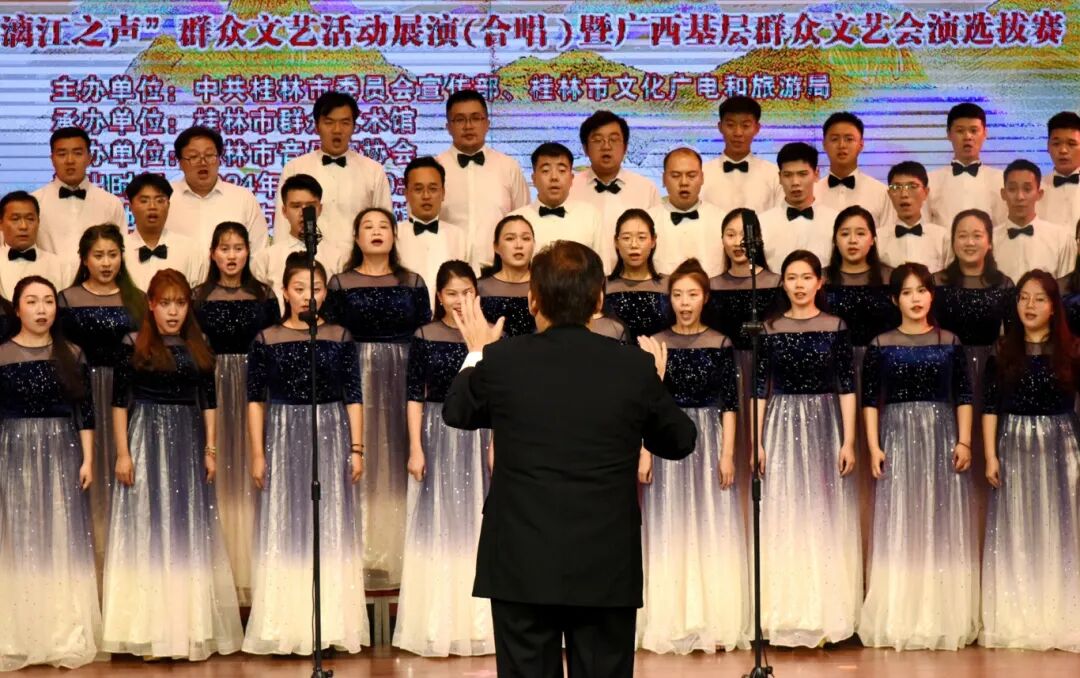 当晚,活动成为广大群众展示自我、绽放才艺的舞台,让每一位参与者都能成为文化的缔造者和传播者。来自桂林各地的 9 支优秀合唱团队,近500名演员豪情满怀,用他们激昂的歌声,抒发了对党和祖国的无限热爱,唱出了对民族风情的独特诠释,唱出了对时代精神的热情赞颂,也唱出了对美好生活的憧憬向往。