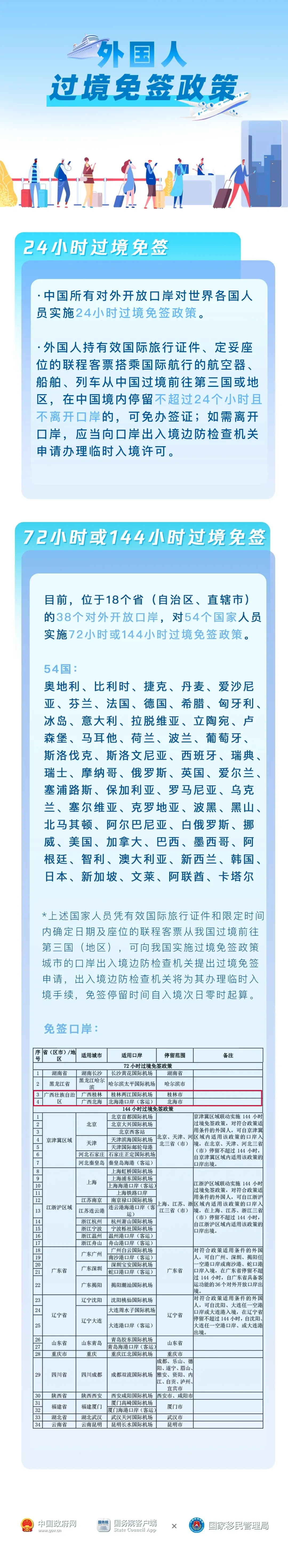 “一图读懂”外国人过境免签政策中