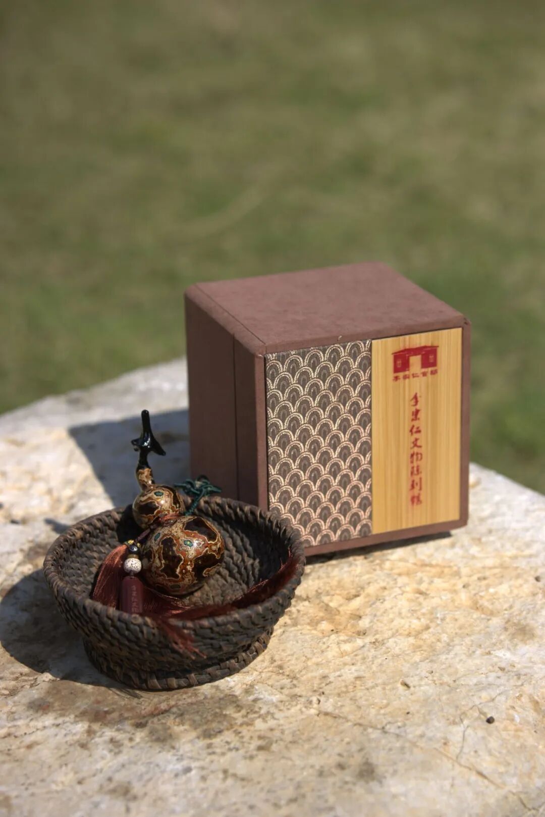 桂林漆器制作技艺为广西壮族自治区级非物质文化遗产的代表性项目。工艺发源于西汉初年,有2200多年历史,学称天然胎漆器,是岭南传统漆器工艺的典型代表,工艺技法独树一帜,地域特征十分鲜明。我馆结合本馆特有logo制作的大漆葫芦文创产品,取葫芦音同“福禄”的吉祥象征,展示了一份美好的祝福。