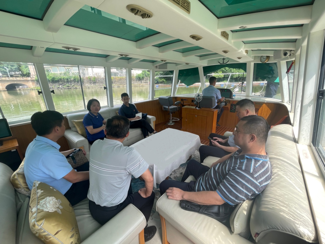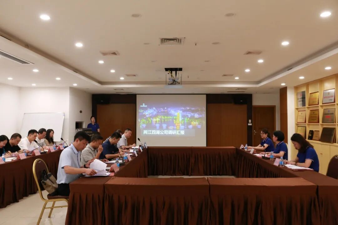 调研组一行先后实地视察调研了两江四湖景区水质提升项目施工进展情况和景区木龙湖升船机、春天湖船闸灾后修复运转情况,并在两江四湖景区公司会议室开展调研座谈。会上,两江四湖公司唐长荣董事长就企业基本概况、上半年运行情况、重点工作推进、目前存在的困难、下一步工作计划等五方面进行了详细汇报。参与调研座谈的股份公司相关分管领导及部门负责人分别就企业的长远发展及经营管理问题提出了诸多建设性意见。