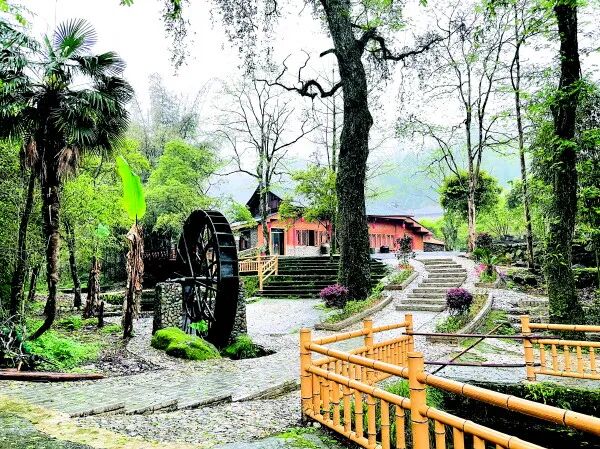 龙塘寨是“华江九寨”之一,一条山溪顺着山势蜿蜒而下,原始森林郁郁葱茏,寨内游人如织,尽显新农村风貌。