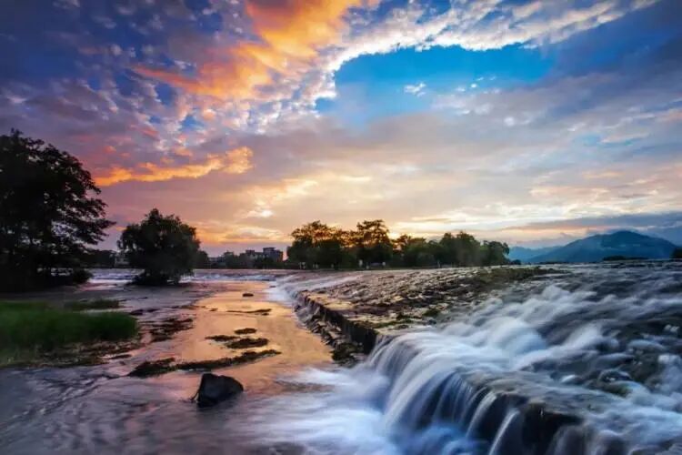水街是建立在灵渠旁一条数里长的街道,水上足足有十多条古桥,每条都别具特色。而水街的夜景更是迷人,随着夜色降临,河畔两边各色的灯盏纷纷亮起。伴着传统气息极强的小桥流水人家,自是别有一番风味。