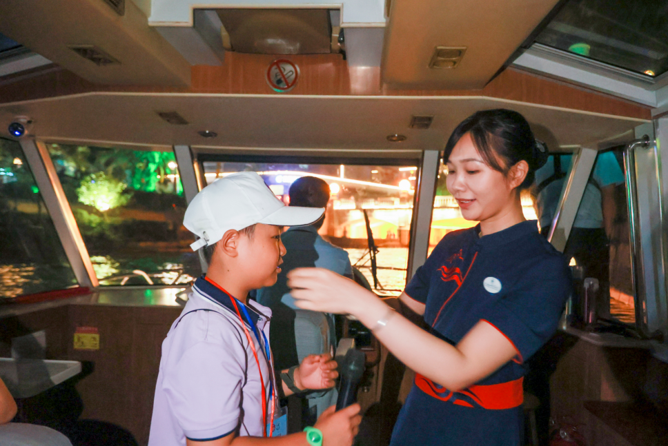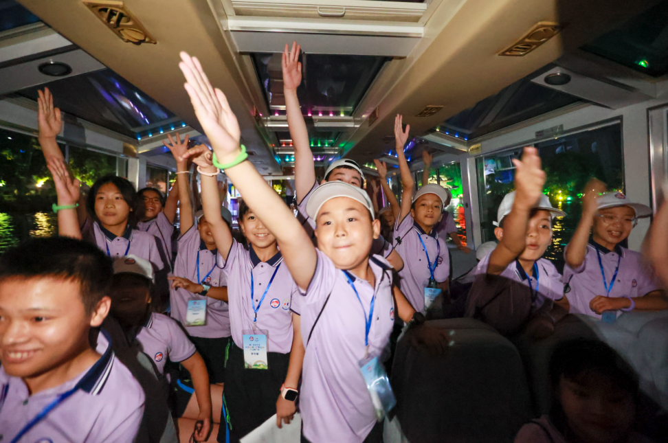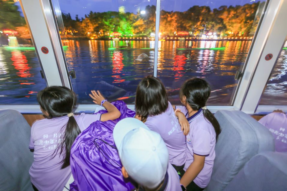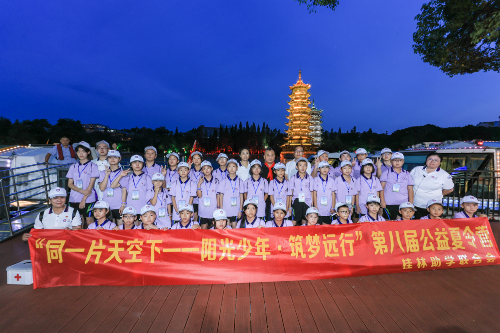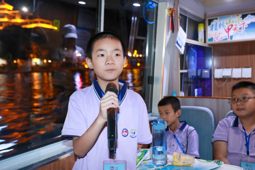 这些来自大山里的孩子们在老师和助学联合会志愿者的带领下,登上了两江四湖游船,兴高采烈地游览了桂林名片——两江四湖,体验了古诗中“千峰环野立,一水抱城游”的美丽景色。当原来在书本中通过文字感知的景色展现在同学们面前时,同学们被眼前美景深深地震撼和吸引了。