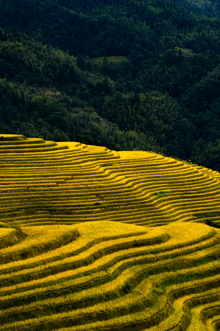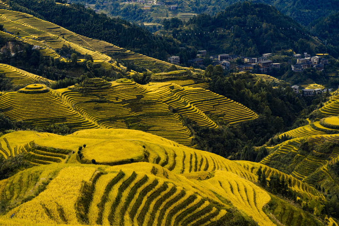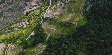 龙胜梯田了一年之中都是美景,春季的玻璃田倒映着天高、夏季的绿色“波浪”整整清爽、秋季的金色麦浪美如油画、冬季的白雪皑皑宁静祥和......