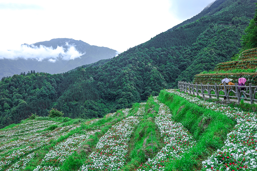 在花海梯田顶部的右边,有一座矗立在山坡边的亭子,叫观瀑亭,是观看加乌瀑布的最佳地点。