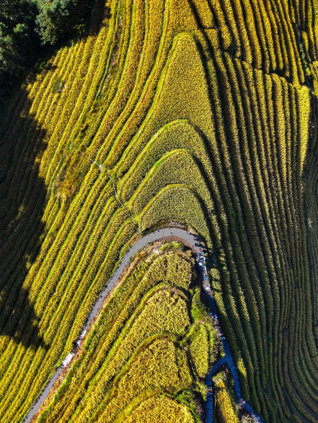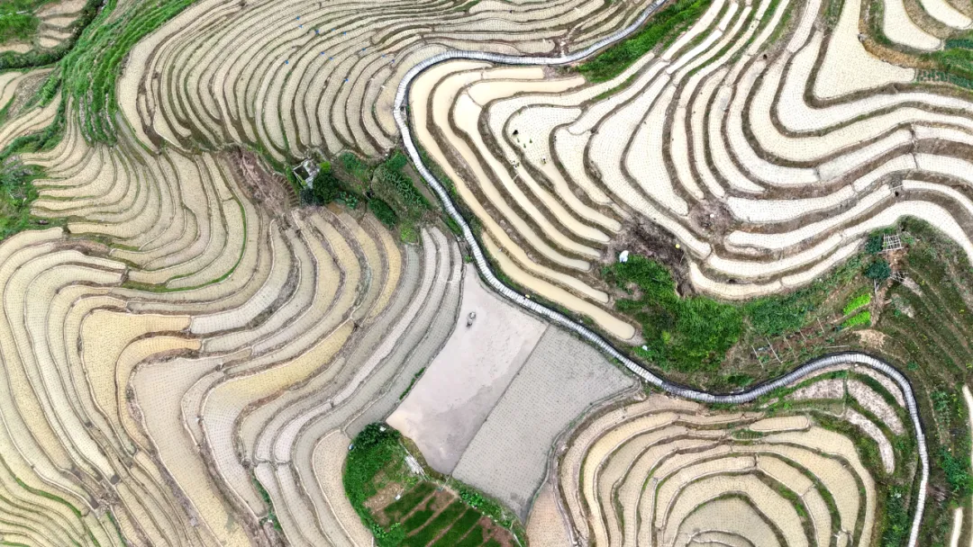 叹罕见梯田壮观之景。
