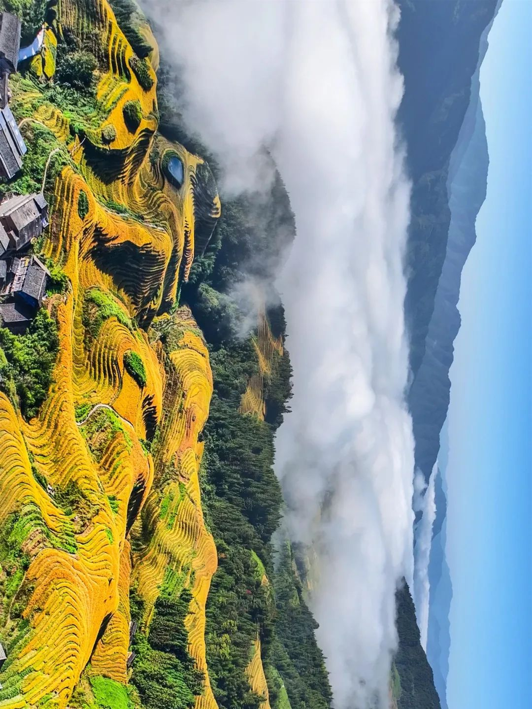金坑梯田也是龙脊梯田里规模最大的梯田,也是最为壮观的龙脊梯田。