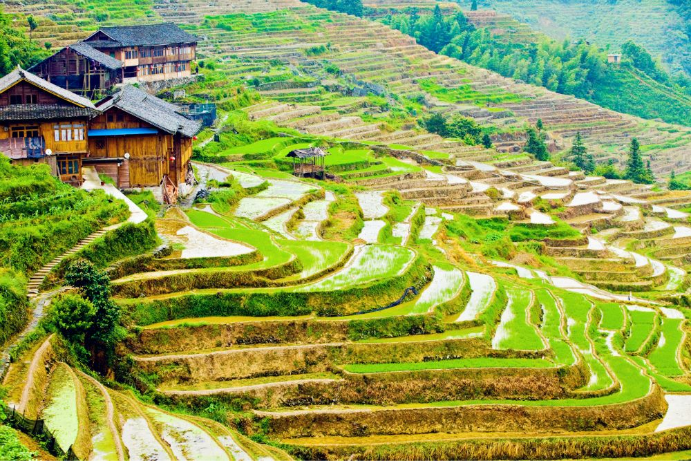 布尼梯田加乌瀑布景区→龙脊梯田-古壮寨→景区用餐→入住龙脊梯田民宿(推荐民宿:龙脊·云隐山舍、龙脊梯田耘端观景民宿)