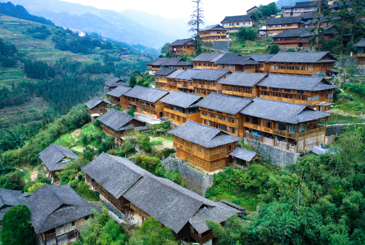 龙脊古壮寨,至少有430多年的历史,拥有广西乃至全国保存最完整、最古老、规模最大的壮族干栏式吊脚木楼建筑群,其中有5处木楼已经有超过100年以上的历史,其中最老的木楼达250年的历史。