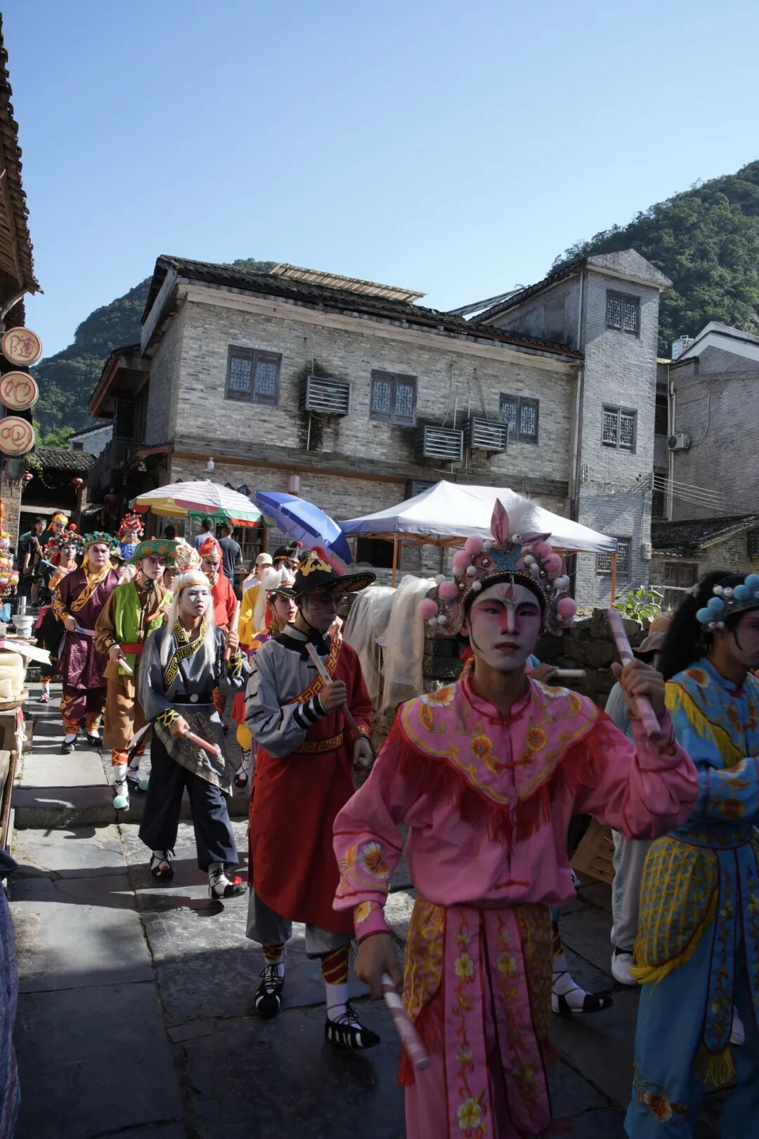 演出路线:游客中心—东门楼—带龙桥—睡仙榕—永安门—安乐街—金德街—迎秀街—郭家大院—农趣园(舞台表演)—郭家大院—迎秀街—金德寺—安乐街—带龙桥—东门楼