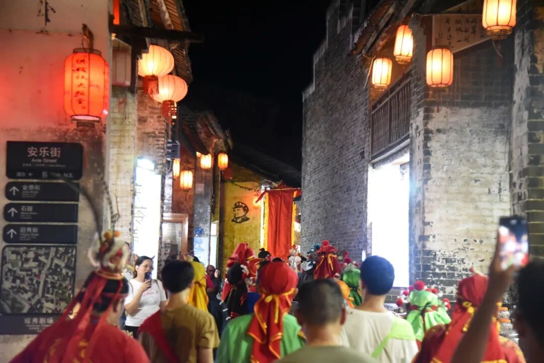英歌舞历史悠久,至今仍保留驱邪祈福的的美好寓意,舞队行进在弄巷,不仅为古镇增添了一道行走的靓丽风景,更为每个角落带来了“福气”。