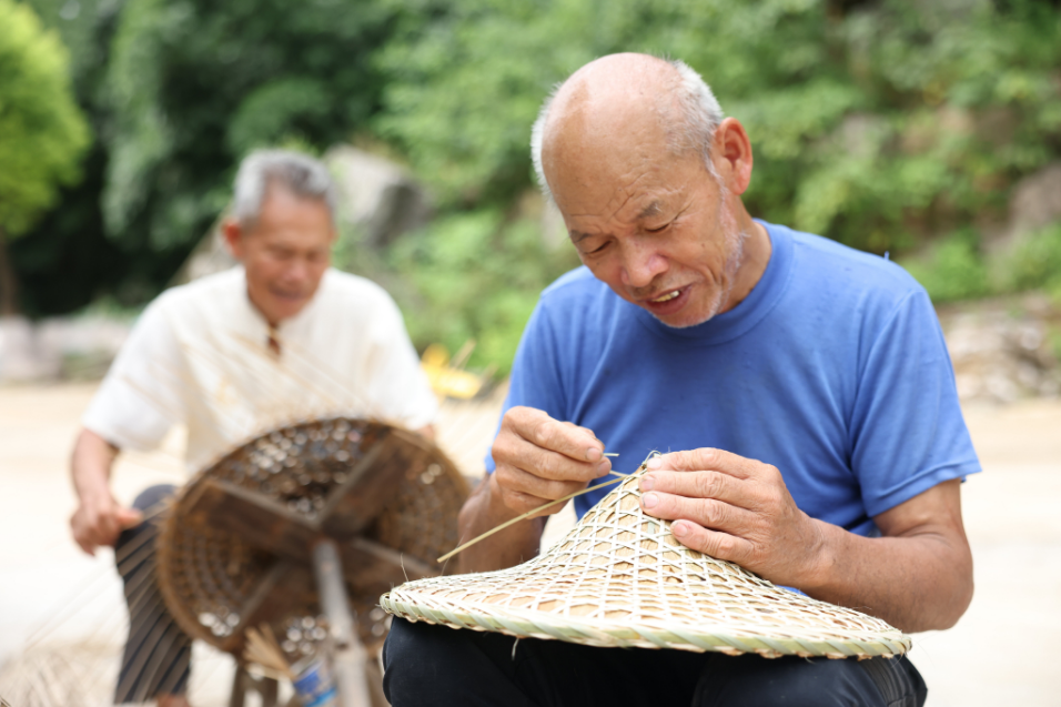 盛夏7月,又到了桂林一年当中最热的时候,也是平乐县张家镇老埠村砧板寨的雨帽手艺人忙碌的时候。砧板寨村民雨帽的手艺传自农耕时代,这个村家家户户都会做雨帽,一直延续到现在,人们习惯性称它为“雨帽村”。