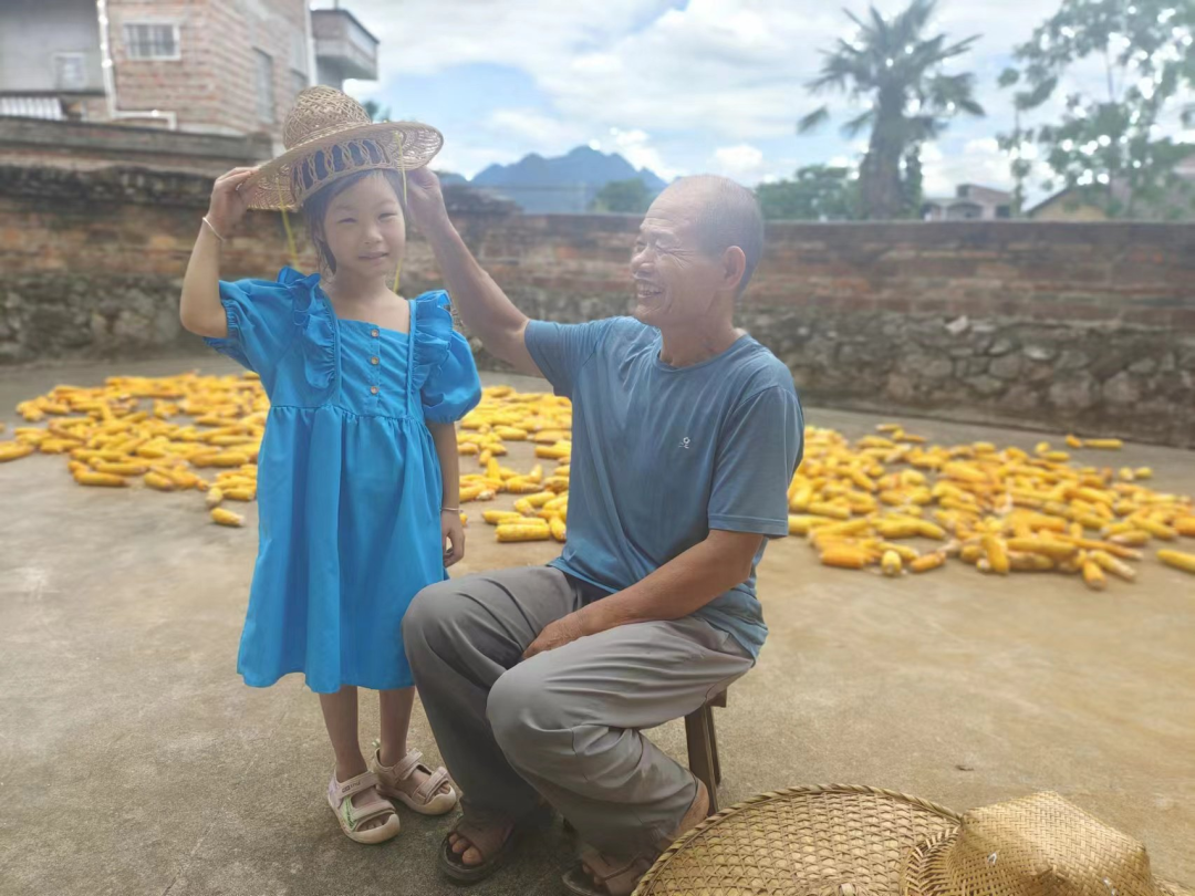 △雨帽村的60岁以上老人都会编雨帽。通讯员苏桂 摄等到莫增德他们这一辈成年后,雨帽手艺更加成熟,利用空闲时间,一天做两三个不在话下。编雨帽是一种手艺,讲究的就是对竹子的利用,莫增德一家人手艺都好,曾经有一家酱油厂专门找到他弟弟莫再德,请他帮忙用竹子编几个酱油缸的盖子。这种盖子一个直径就要接近两米,整个盖子最后编出来有4斤重,当时莫再德琢磨了一阵子,虽然盖子是加大版雨帽,但又不同于雨帽,要保证密封和耐用,最后成品效果非常好,酱油厂家找他订了100个。时代向前发展,“雨帽村”的手艺虽然还在,但年轻一代大多数不再以此为生,现在村里都是60岁左右的老人在编雨帽,但正如莫增德说的一样,雨帽的手艺全靠耳濡目染,莫增德的子女早就“看”会了雨帽编织方法,莫增德说,儿女们偶尔编几个,还是挺像模像样的。2021年时,莫增德的弟弟莫再德被评为平乐雨帽制作技艺的代表性传承人,他家的子女也偶尔编几个雨帽,手艺也全是“看”会的。就连5岁的小孙女都知道莫再德编雨帽手艺好,她经常骄傲地告诉小朋友,“爷爷的雨帽好看,我和爷爷经常戴着雨帽出去接奶奶,而且幼儿园表演节目也能用。”△莫再德和孙女经常戴着雨帽外出。记者苏文娟 摄