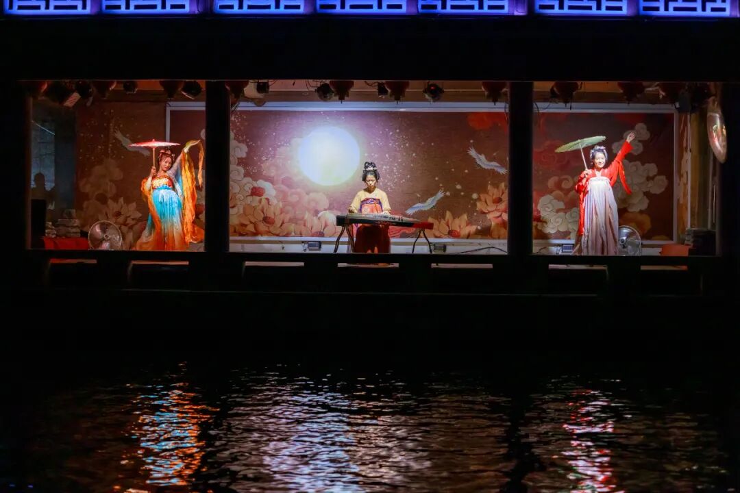 千万不要错过这场震撼的木龙湖光影秀!先进的声光影技术再现秦军南征百越之战,融合地方非遗文化中刘三姐和阿牛哥的传奇爱情故事。流光溢彩的灯效与木龙湖绚丽的夜景、气势恢宏的宋城墙以及环湖岸边的宋代风格建筑群相互辉映,共同打造出美轮美奂的木龙湖不夜城景色,让远古的历史文化在两江四湖景区再度绽放光芒。