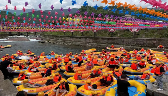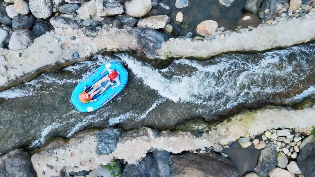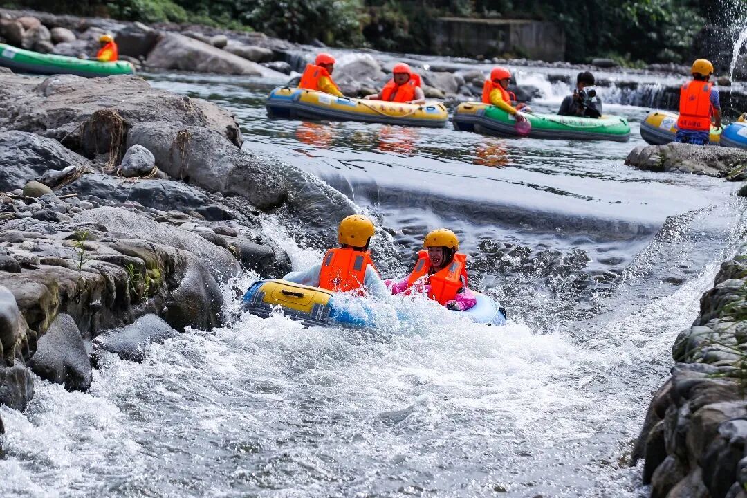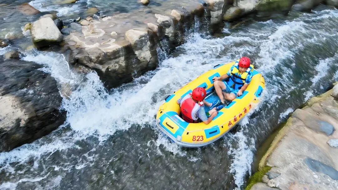 自然河道生态漂,总长度为5公里,落差达106米,前1.1公里为“勇士惊险漂”,乘坐的皮划艇高速滑行犹如浪尖上的过山车,一路漂流而下,动人心魄!