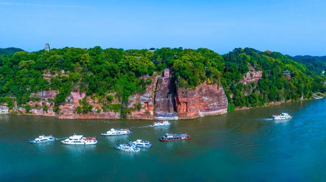 雄伟壮观的乐山大佛,每天都吸引着无数游客前来。来到景区除了登上凌云山,还可以乘船游览,远观大佛的雄伟壮观,领略三江汇流的自然美景。
