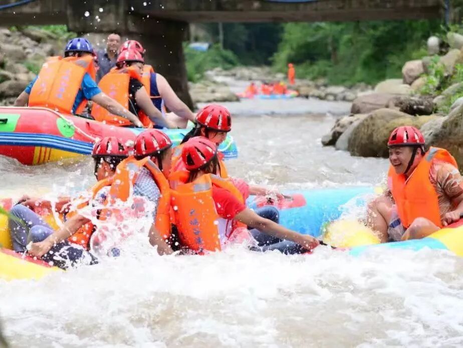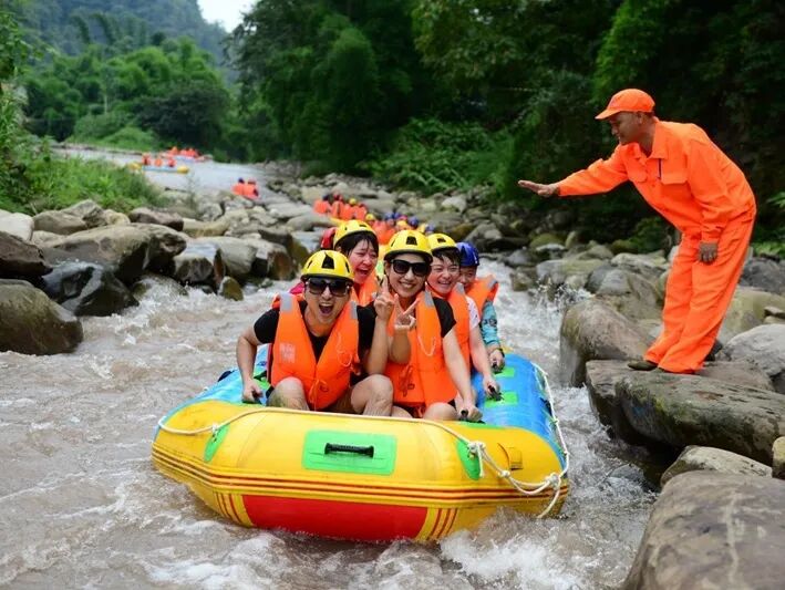 全长9.6公里,一眼望不到头的超长峡谷河道,沿途惊险连连,一次漂流时间长达2小时,是四川省内仅有的6人舟漂流,六人同舟更安全稳定,欢乐加倍!