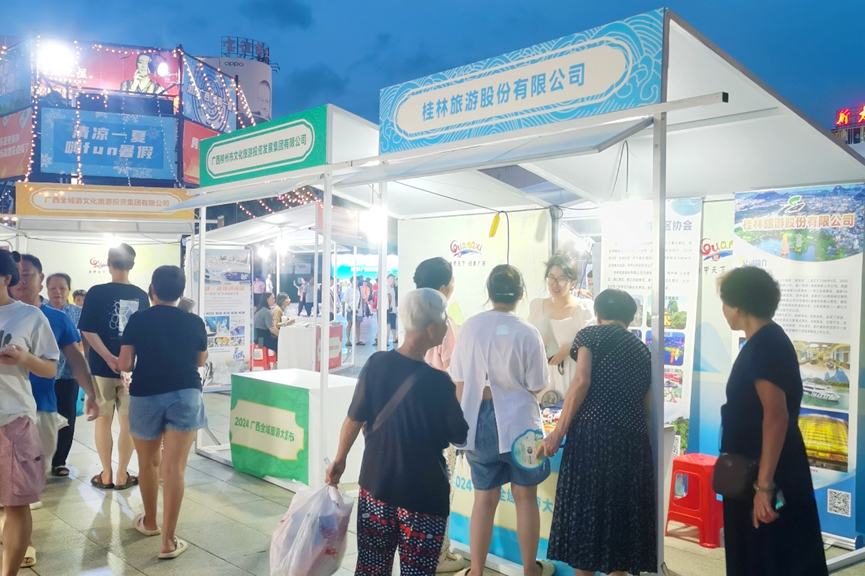 大集市上,营销中心相关人员还精心准备了文创产品介绍、旅游咨询等多项内容,吸引了大量市民和同行驻足参与,现场气氛热烈非凡,较多市民表示桂林已成为他们的避暑首选。