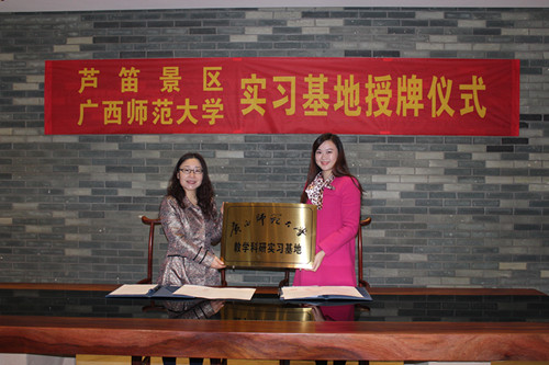 广西师范大学文旅学院教学科研实习基地的建立必将促进双方的友好合作。芦笛景区的外宾接待量在桂林名列前茅,贵院可以利用芦笛景区的资源优势开展学生专业实习、知识拓展和导游讲解等方面的校企合作。而芦笛景区可以充分依托学院人才、科研、专业等方面的优势提升景区服务品质和储备景区人才,打造精品景区。双方的合作是完美的融合,达到最佳的互利共赢,对提升双方的软实力,争创一流院校及精品景区打下坚实的基础。
