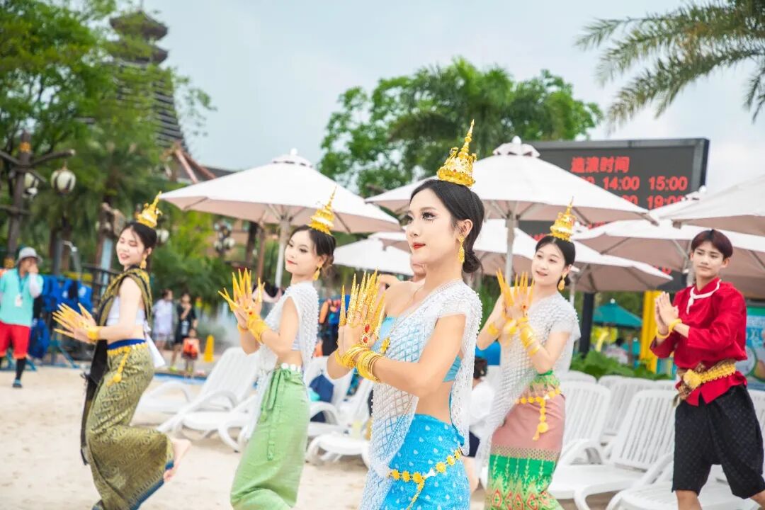 从沙滩到舞台,一场场精彩绝伦的泰式风格表演轮番上演。身着华丽服饰的泰式男团女团,以妖媚、劲爆的精湛舞艺和展现了泰国传统文化的独特魅力,舞蹈结束后热情大方的参与到泼水大战中,与游客们玩得不亦乐乎。