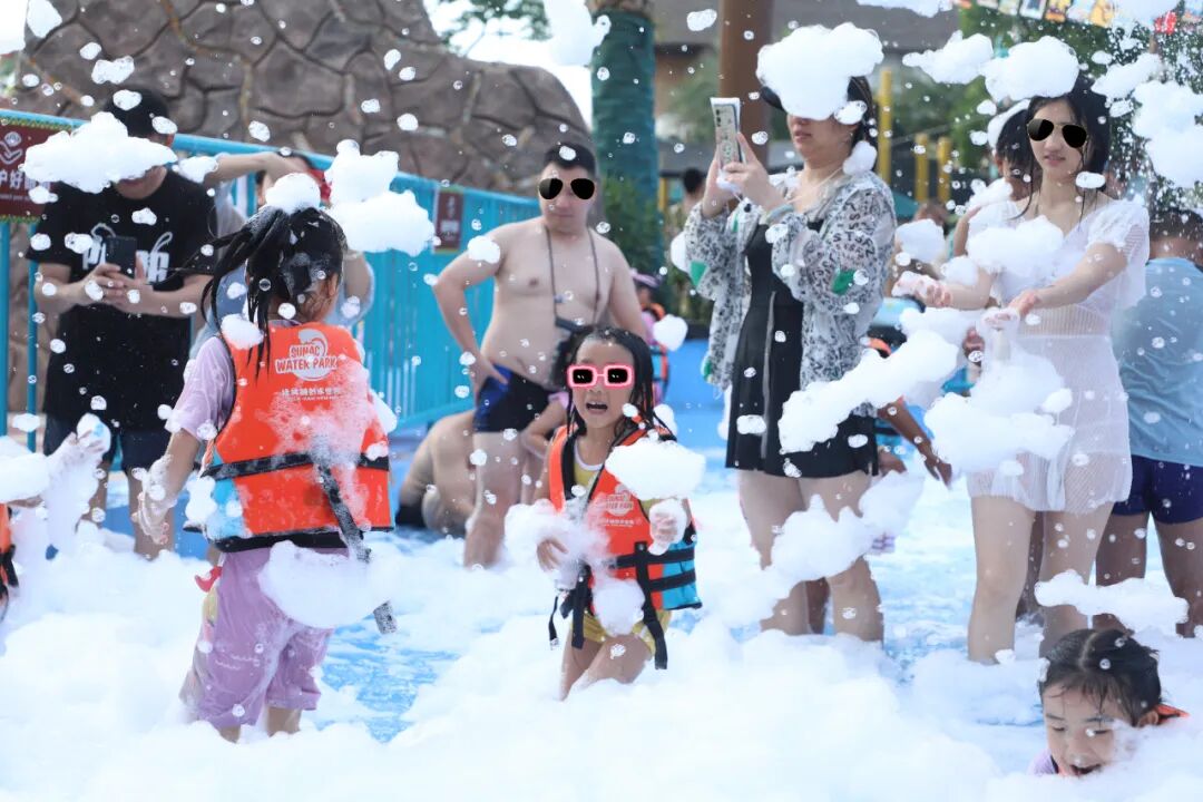 同时每天定期举办多场水上冲冲冲、Kiss cam等互动活动,游客在尽情享受蜿蜒滑道、超级漩涡等水上刺激设备同时,还随时可从热闹的互动活动中感受夏日清凉。