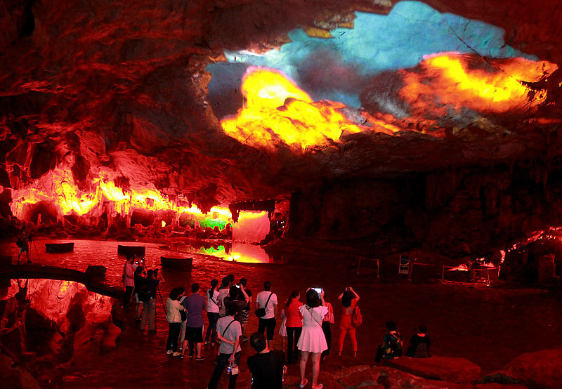 芦笛岩的岩洞灯光设计不断更新改进,通过现代科技手段,开创国内首创的“芦笛 洞镜”灯光秀,把游客带入亿万年前的梦幻的海底世界,在时空的变换中饱览瑰丽景致,体验沧海桑田岩溶变化发展历史。