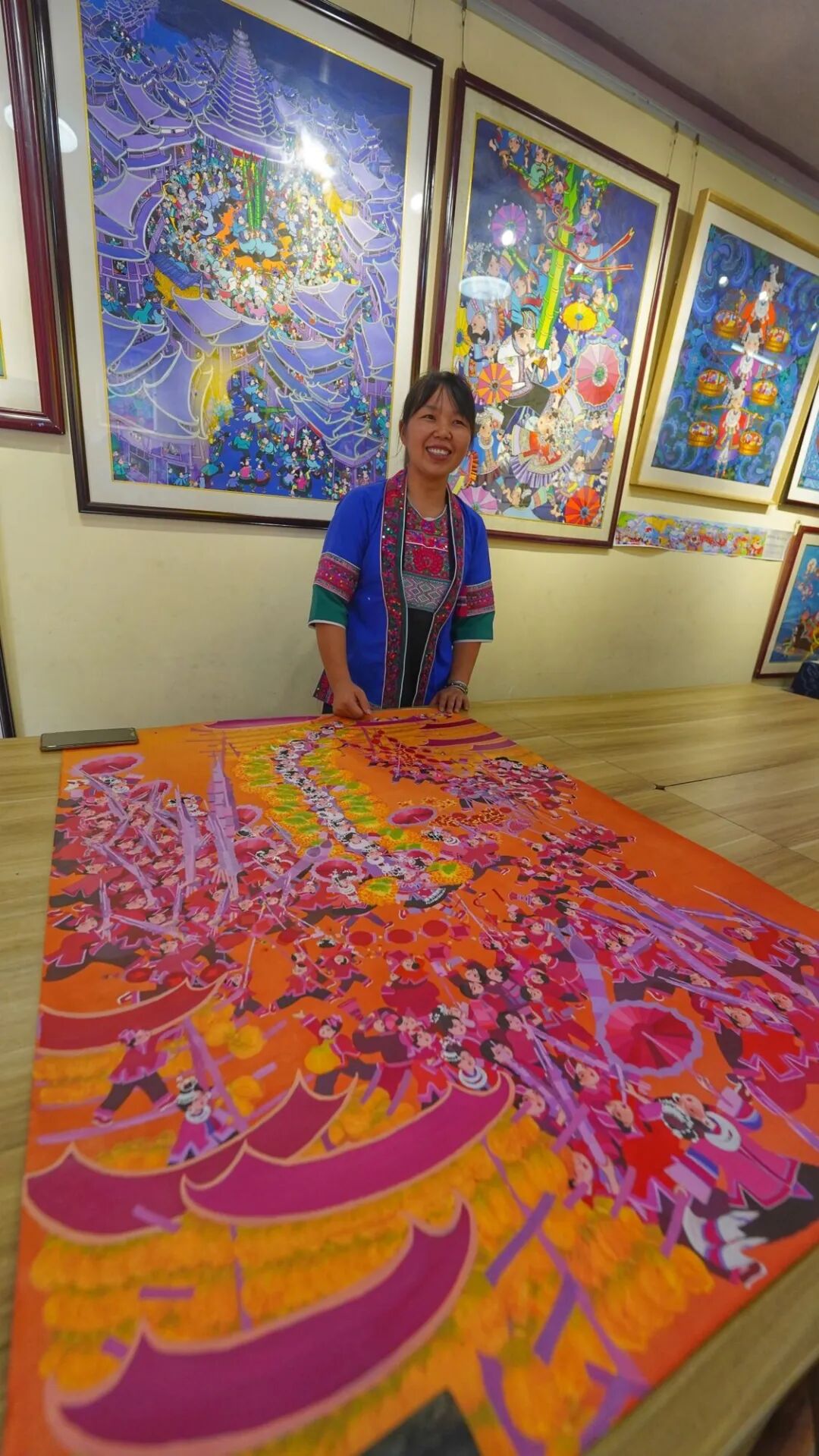 “这幅长卷即将送往北京,参加在北京国家画院举办的广西农民画创作精品巡展。”三江侗族自治县美术家协会主席陈玉秋告诉记者,三江农民画起源于唐代的“侗彩绘”,以农村生活为题材,用朴实的笔触和丰富的色彩表达群众对美好生活的向往与追求,具有浓郁的乡土气息和民俗特色,以题材鲜明、画风淳朴、色彩鲜艳、地域性与民族性和谐统一而闻名。2012年,三江农民画被列入自治区级非物质文化遗产项目名录。