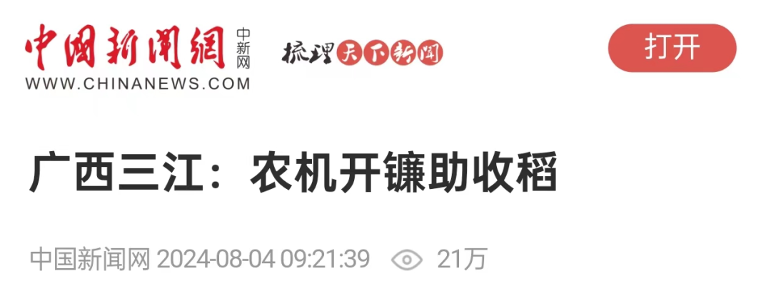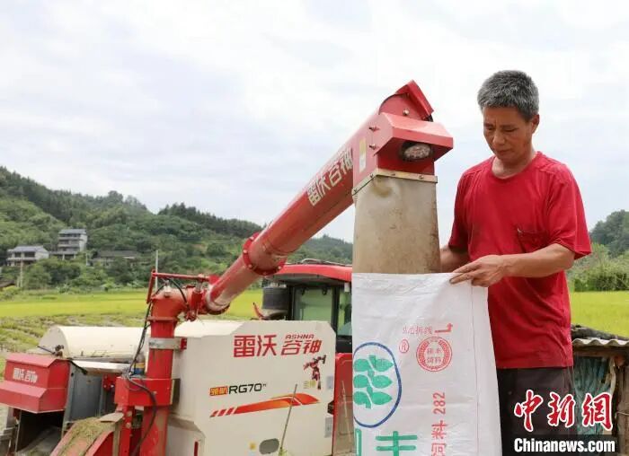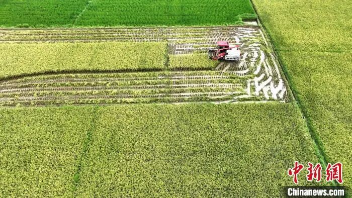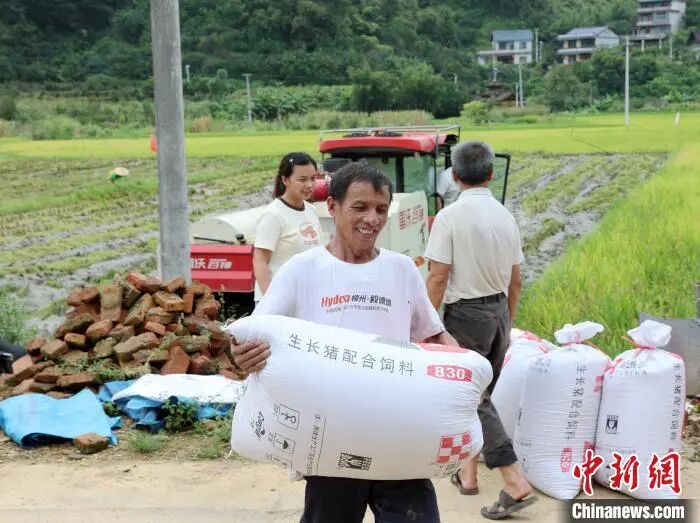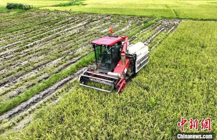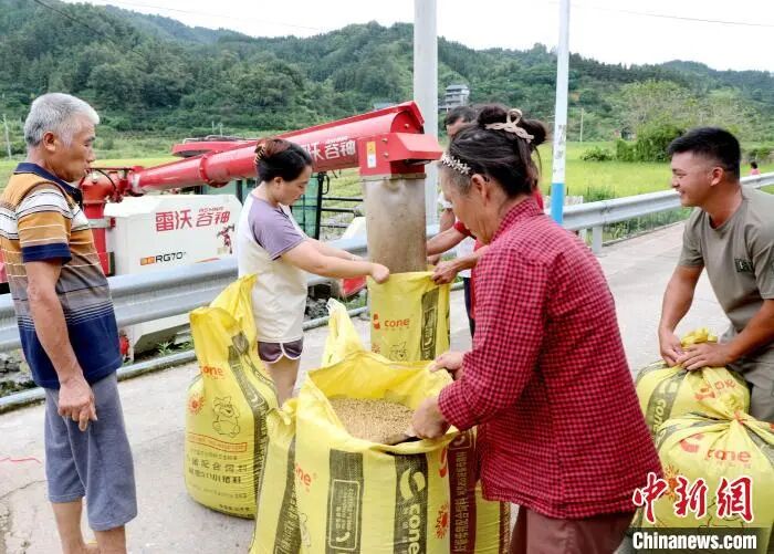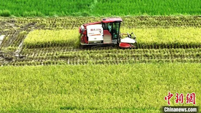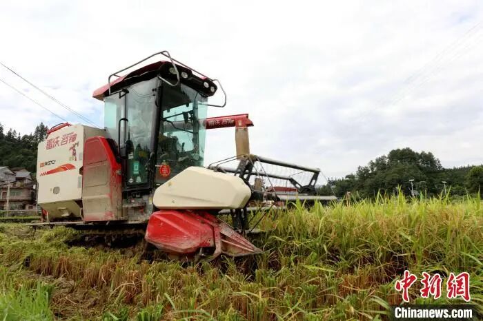 8月3日,广西三江侗族自治县丹洲镇红路村种植的优质稻迎来丰收期,当地村民抢抓晴好天气,利用联合收割机抢收稻谷,确保稻谷颗粒归仓。
