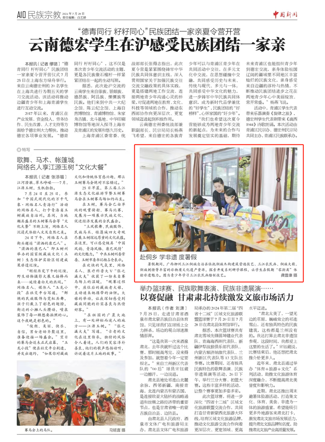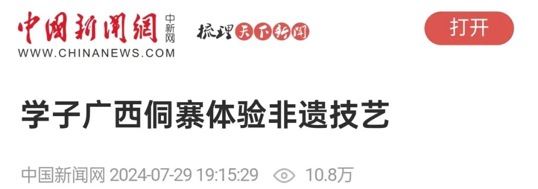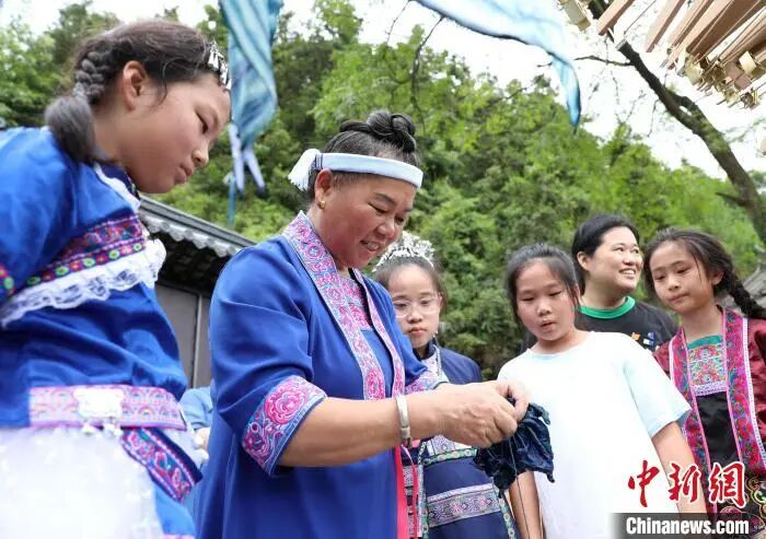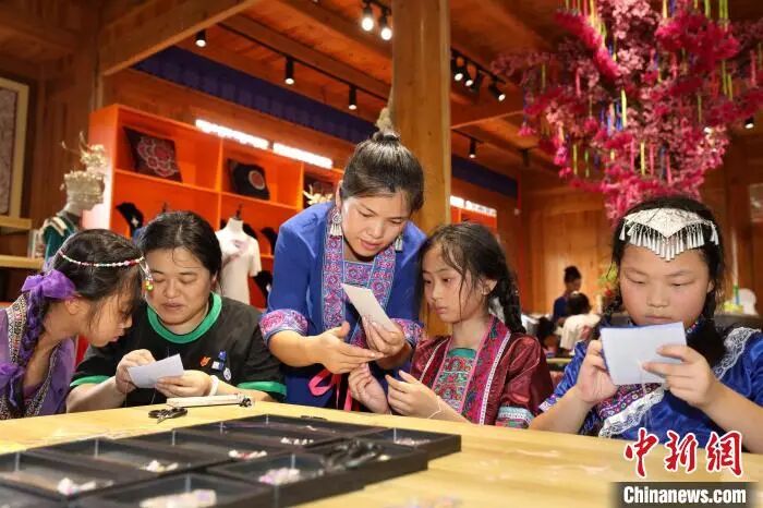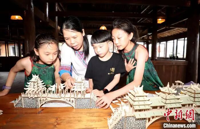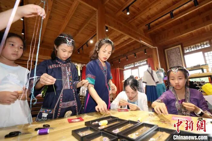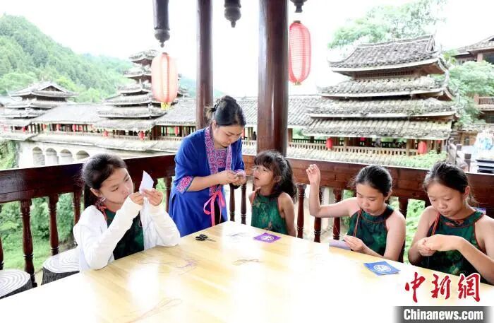 近日,“美丽中国·大美广西”青少年传统文化体验活动走进广西三江侗族自治县,来自北京、上海、江苏、安徽等地的150余名学生及家长在侗寨里开展亲子研学活动,沉浸式体验侗族刺绣、扎染、侗族木构建筑营造技艺、三江农民画等非遗技艺,感受中华优秀传统文化魅力。