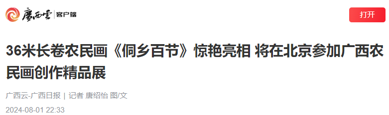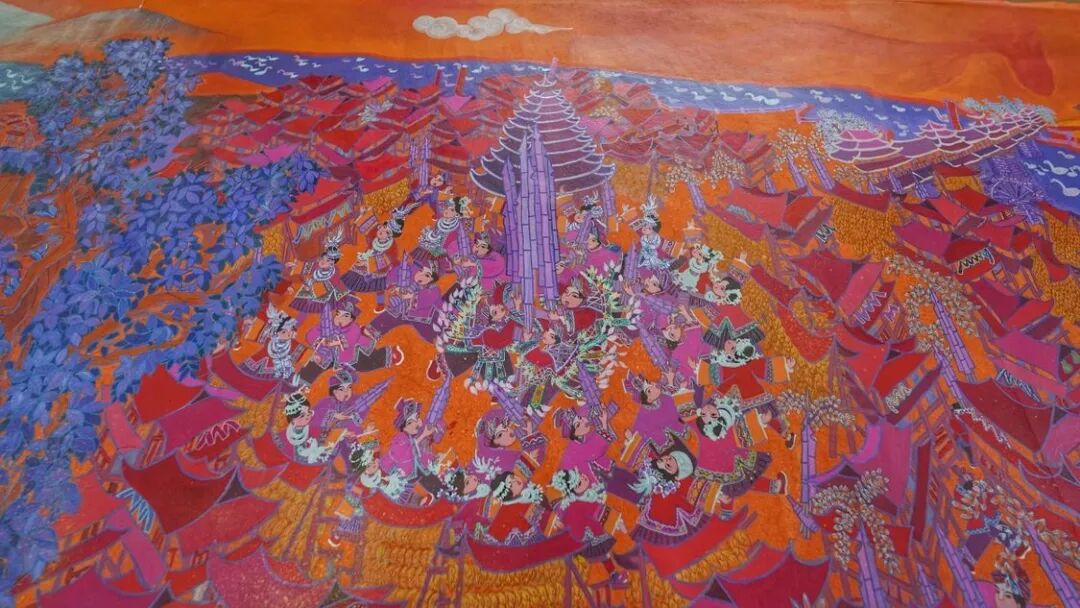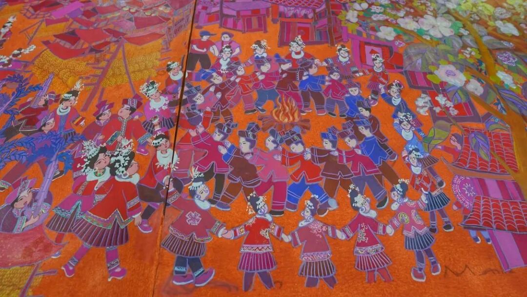 侗寨里,群众吹着芦笙、跳着多耶团结舞,一同庆贺五谷丰收……7月30日下午,由29人耗时100多天集体创作的36米长卷农民画《侗乡百节》在三江侗族自治县惊艳亮相。这幅精美长卷集中展示了百里侗乡的重大节庆习俗和风土人情,被称为侗乡版“清明上河图”。