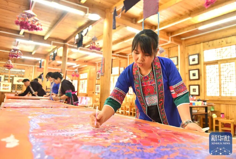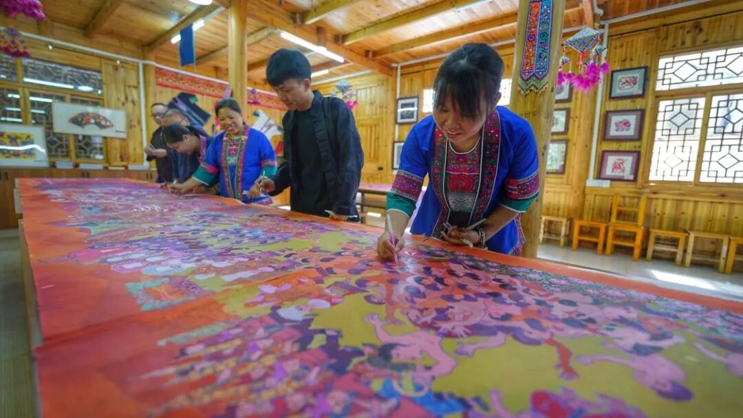 近年来,广西柳州市三江侗族自治县通过专业人才培养、传统艺术进校园、打造研学基地、开展文艺结对帮扶、举办画展和艺术节等方式,大力推动农民画产业发展,助力乡村振兴。