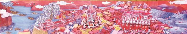 农民画长卷《财源茂盛达三江》全貌。