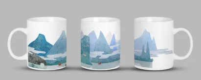 桂林美术馆马克杯文创设计,根据姚奎先生的《桂林山水歌》壁画为设计元素,这幅壁画以首次使用马赛克镶嵌工艺而具有艺术特殊性,漓江山水的清丽灵秀神韵得以完美体现。画面中青绿的整体色调以及具有装饰性的构成,赋予了清、奇、绿、幻的漓江魂,是韩愈“江作青罗带,山如碧玉簪”的经典诗意写真。在设计中对主体图案进行了分割,取舍。着重强调了桂林山水的奇特造型,突出了其独特的意境美;同时与现代设计手法结合起来,使之更加富有文化气息。