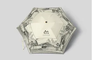 桂林美术馆晴雨伞文创设计,根据中国建筑教科书中桂林美术馆建筑手稿图为设计主体图形,选择具有代表性的美术馆大门形象,运用现代重复构成的设计手法进行排列,配以米色的色彩,体现了强烈的民族感和时代感。整体造型简洁大方,表现出丰富的文化内涵与艺术价值。