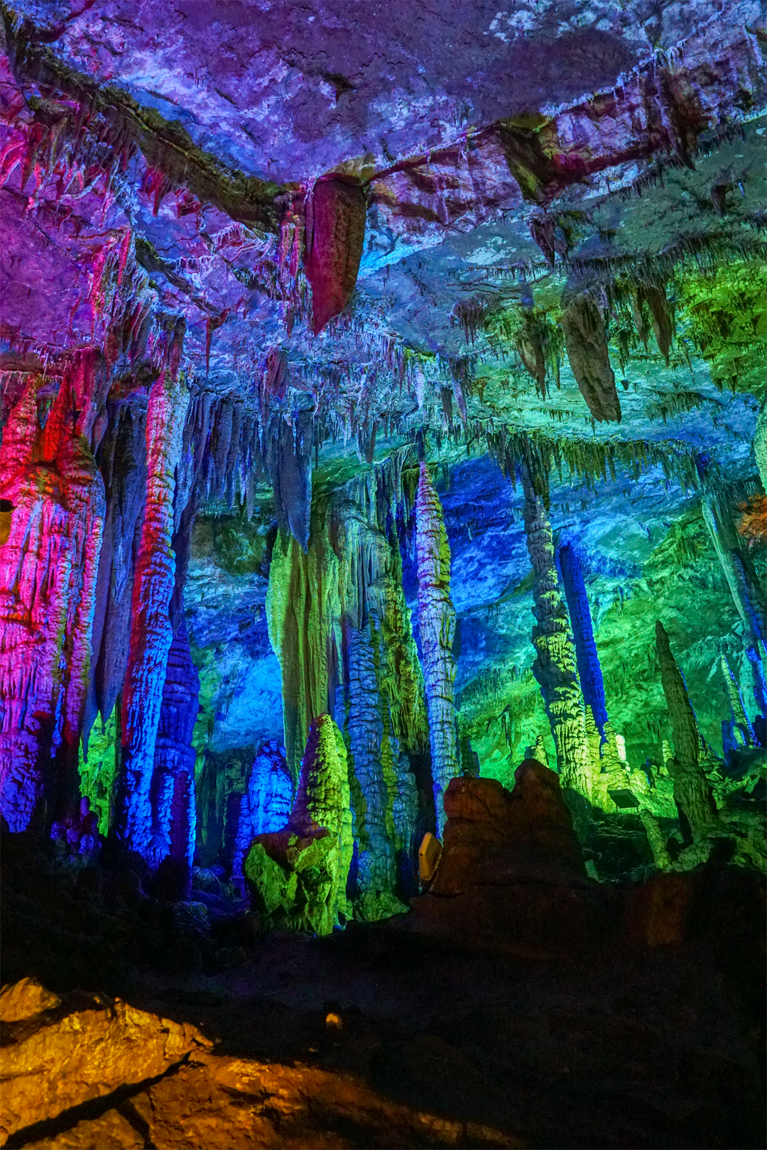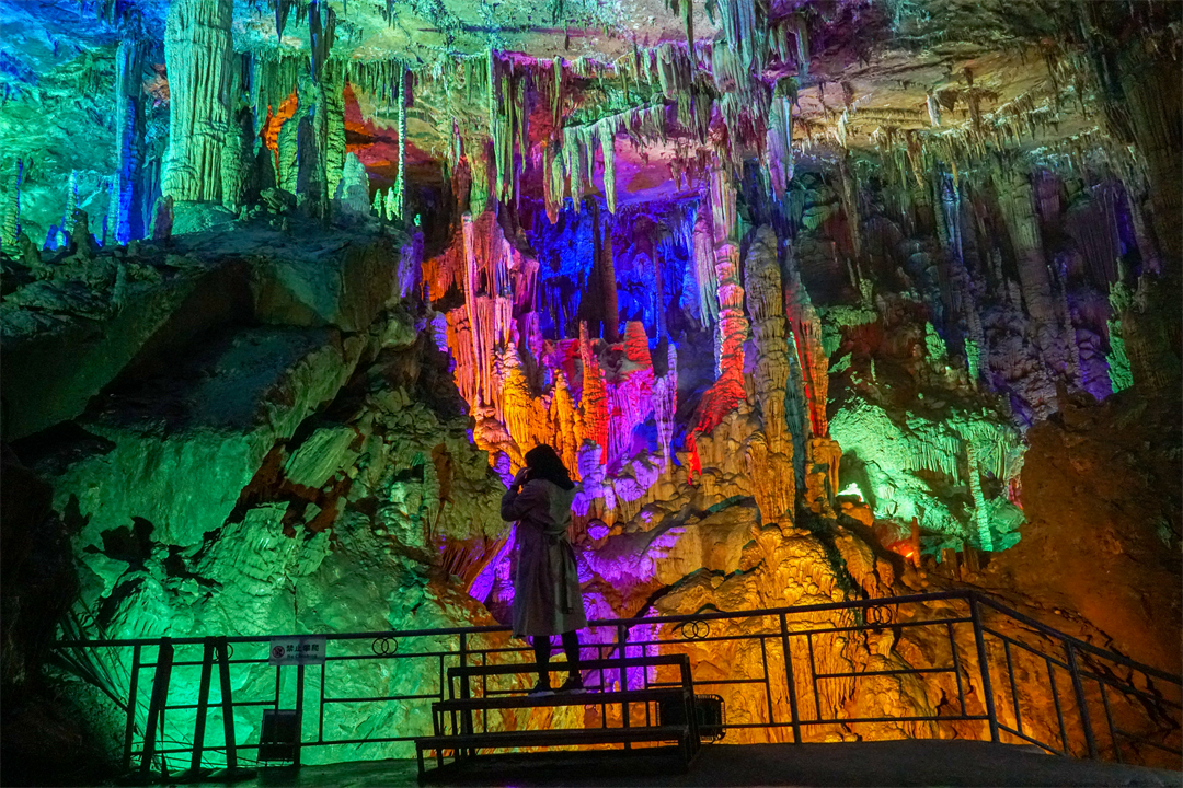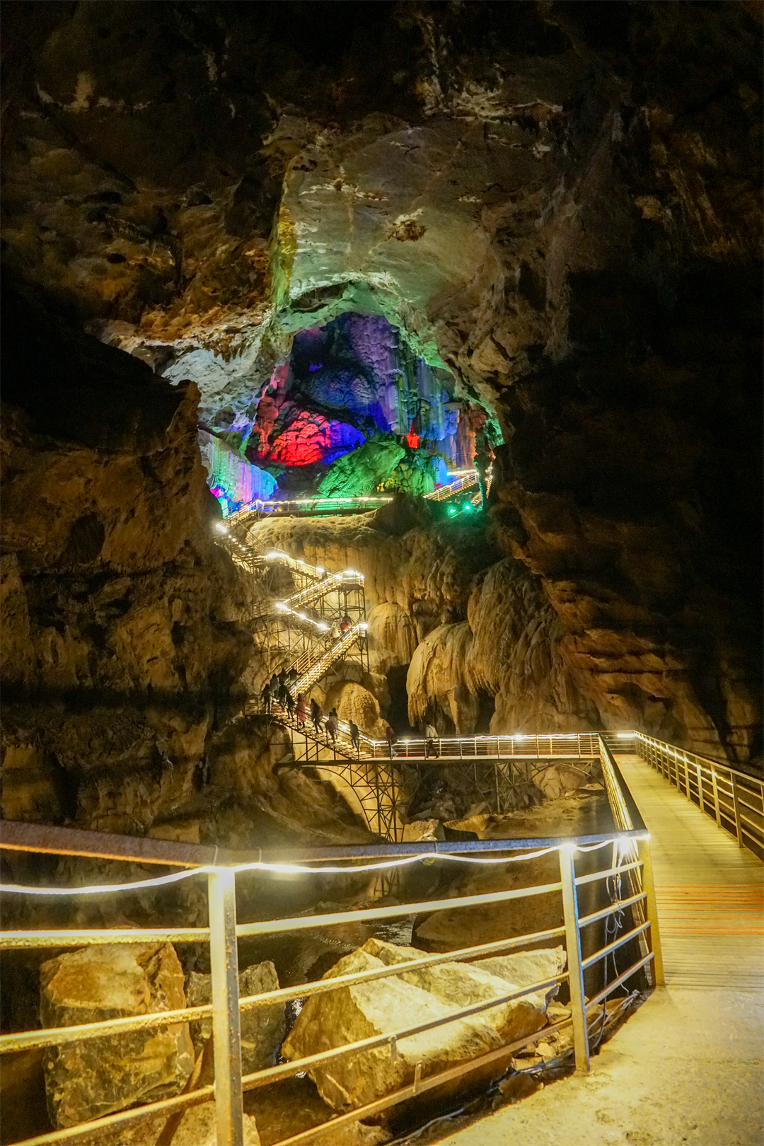 顺着天梯蜿蜒而下,钟乳石奇观360°环绕放映,堪称视觉盛宴。