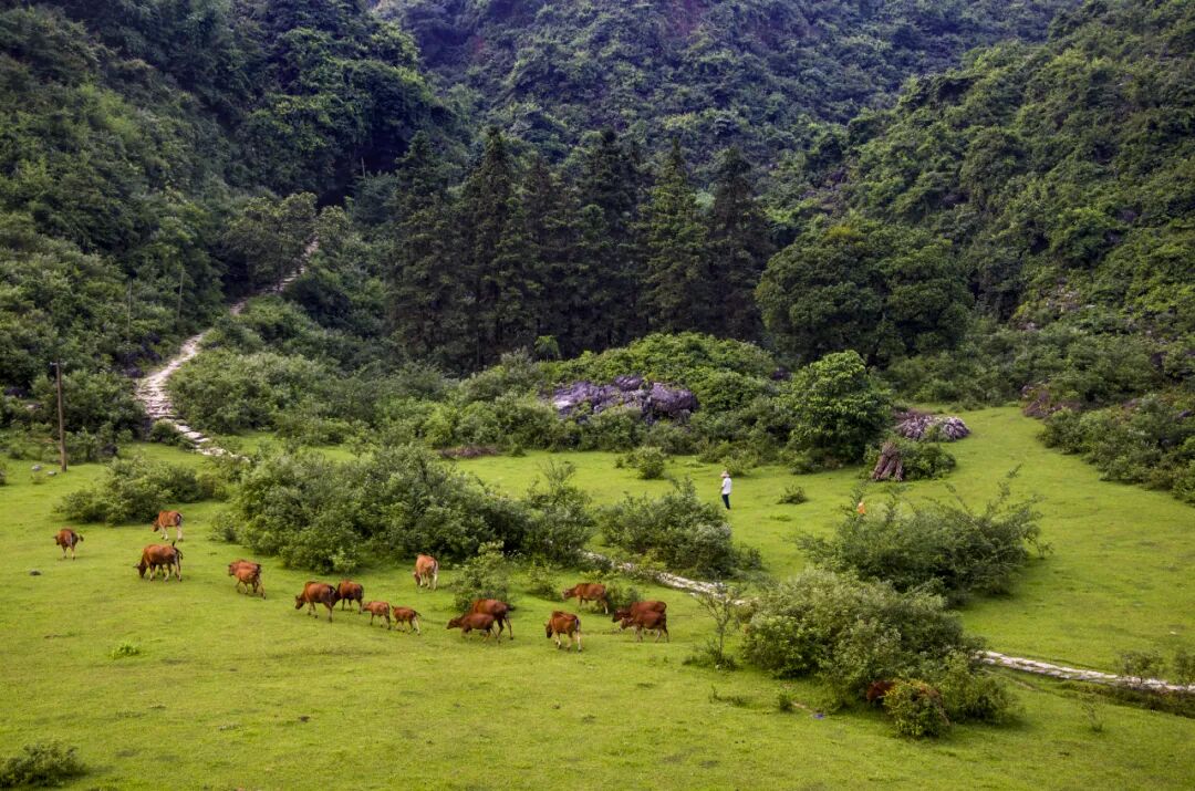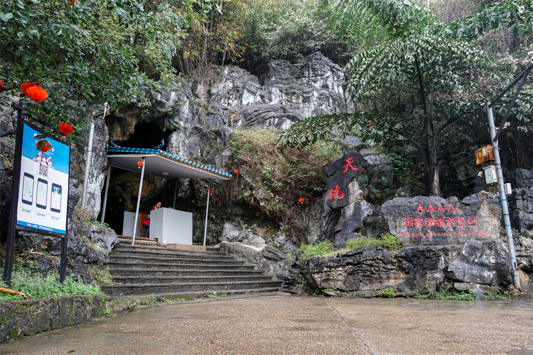乾龙天坑,是世界上迄今发现能轻易从底部步行进入的天坑。