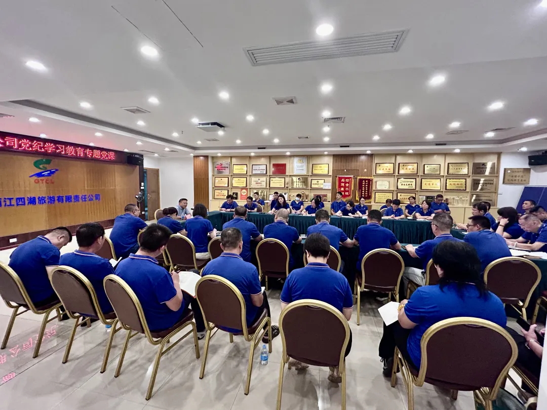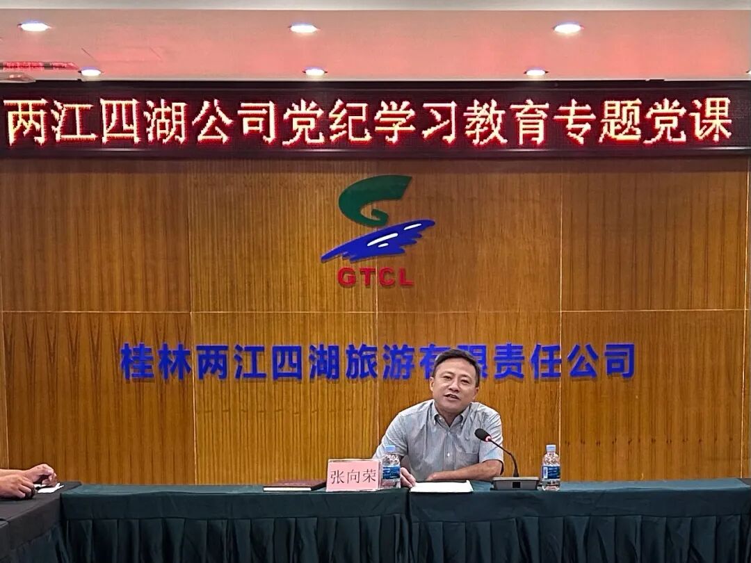 为持续推进党纪学习教育走深走实,2024年7月29日上午,桂林旅游股份公司党委委员、监事会主席张向荣为两江四湖公司领导班子成员、各部室、市内游公司中层正副职、党员代表讲授党纪学习教育专题党课,会议由两江四湖公司党委书记、董事长、总经理唐长荣主持。
