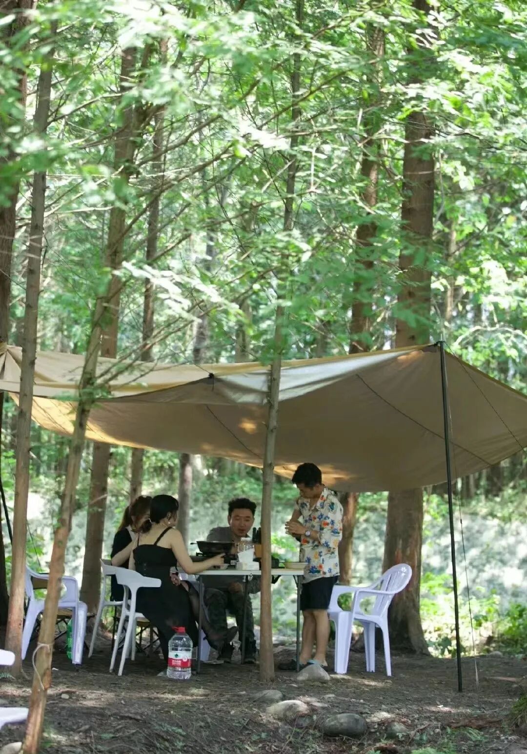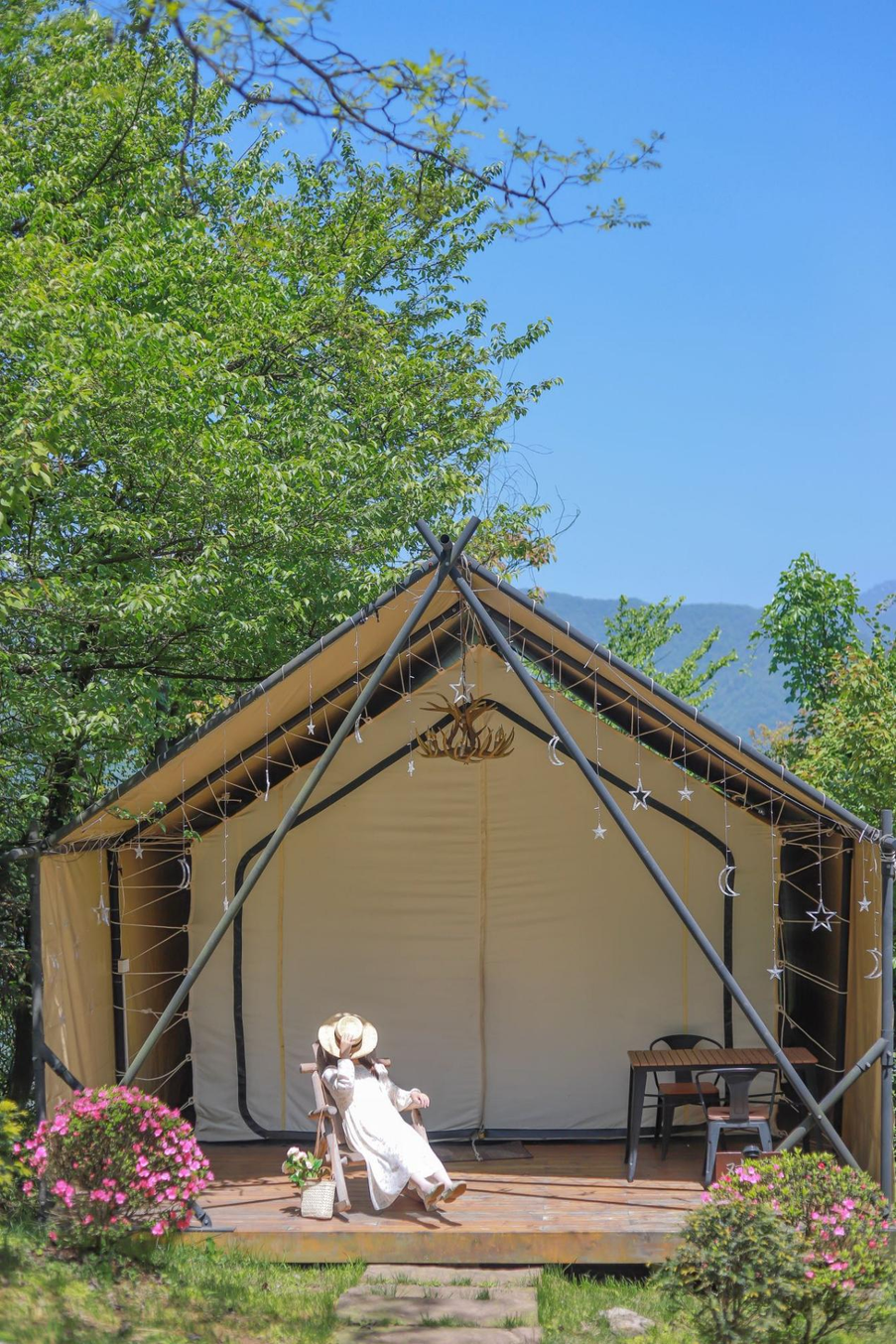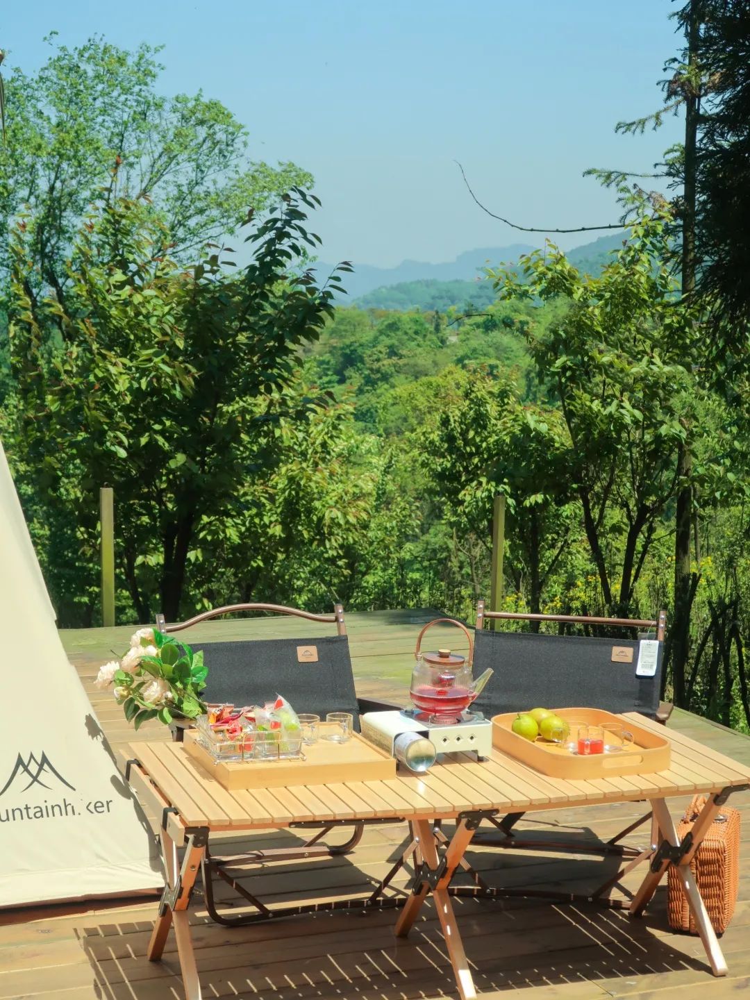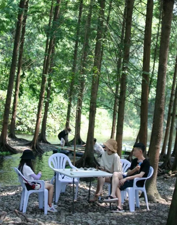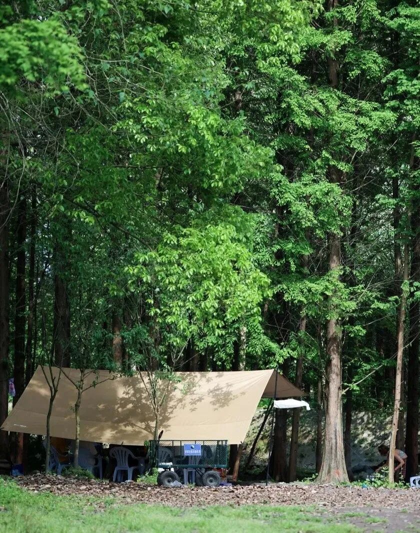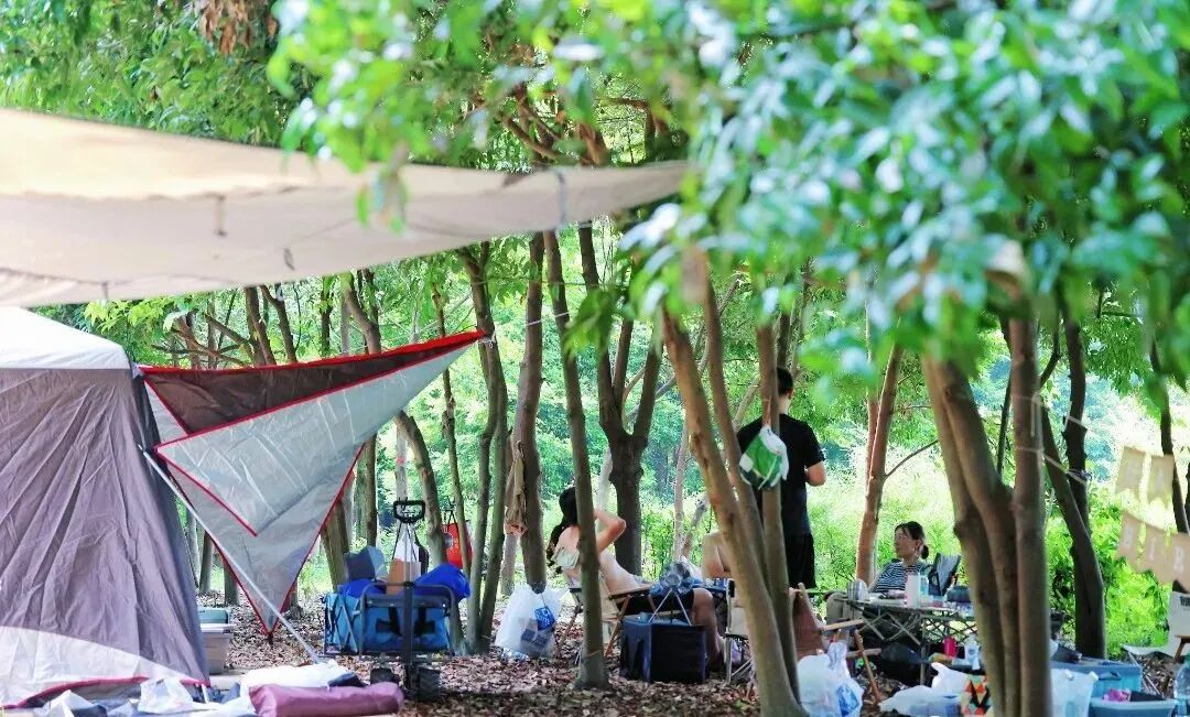 在树荫下搭一个帐篷,听风吹树叶、听潺潺溪水,眯着眼透过葱葱树叶去欣赏山林环抱的美景,好不惬意。