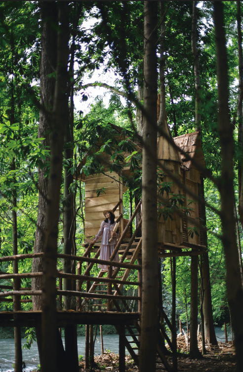 营地还打造了“林中树屋”“儿童树屋滑梯戏水池”“林中浆板戏水池”“小岛婚礼”“岛中音乐舞台”等多种多样的游玩打卡网红场景。
